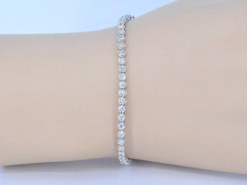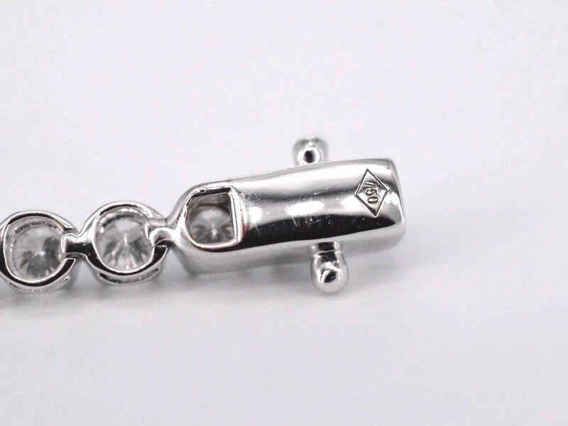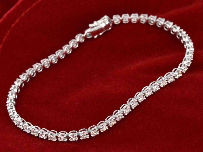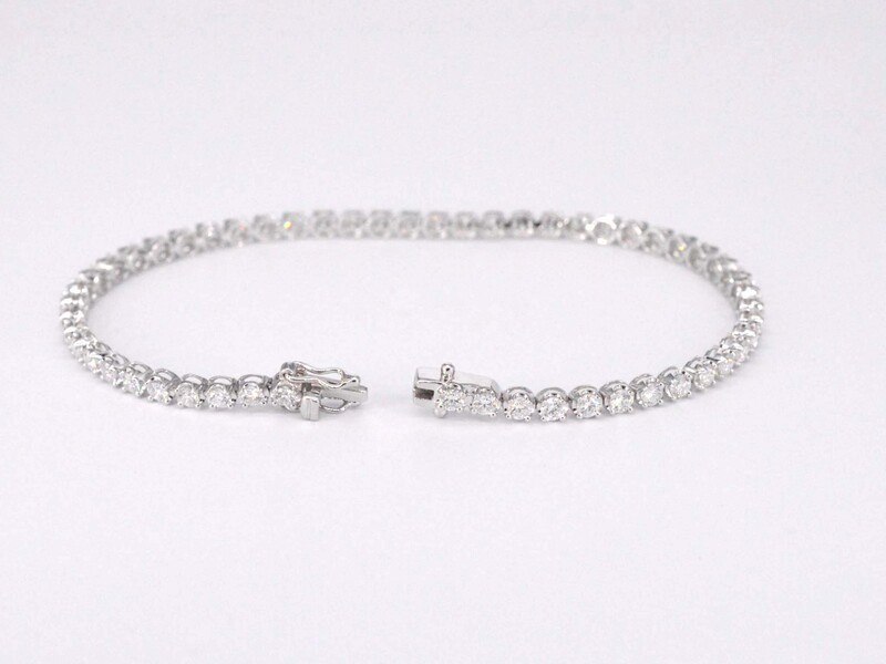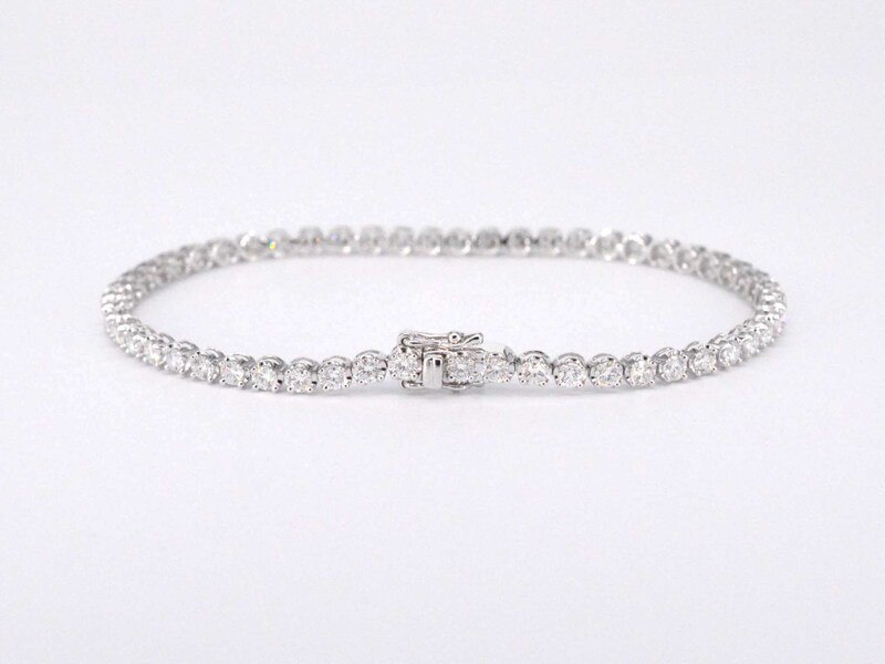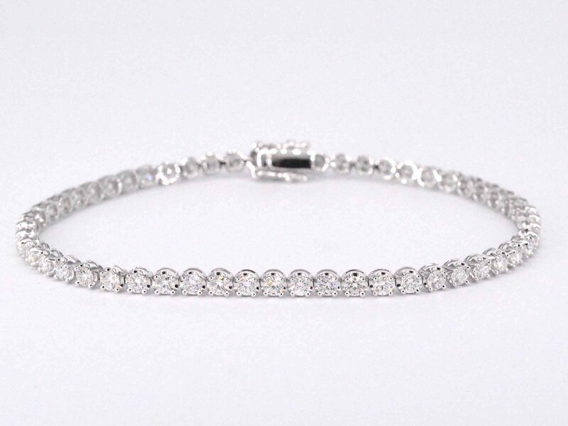 Product: Tennisarmband met 3.00 carat diamanten Specificaties: Diamant: Natuurlijk Slijpvorm: Briljant geslepen Gewicht (carat): 3.00 carat Kleur: F-G Zuiverheid: VS Slijpkwaliteit: Zeer mooi Juweel: Armband Gewicht: 5.8 gram Afmetingen/lengte: 17 cm Materiaal: 18K goud (750) Conditie: Nieuw Verpakking: Luxe sieradendoos Toelichting: De kwaliteit is overgenomen van het rapport behorend bij item. De waardebepaling is een beoordeling van een gecertificeerde diamantair, gebaseerd op consumentenprijzen. Consumentenprijs: € 17.063,-