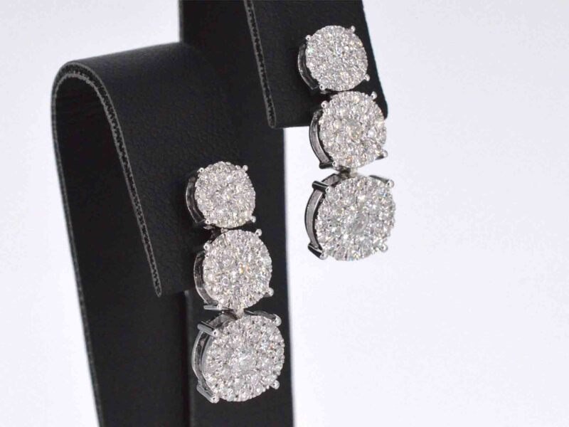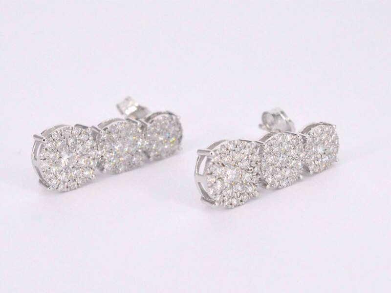 Product: Witgouden oorbellen met drie chatons van diamanten onder elkaar Specificaties: Diamant: Natuurlijk Slijpvorm: Briljant geslepen Gewicht (carat): 1.40 carat Kleur: F-G Zuiverheid: SI-P Slijpkwaliteit: Zeer mooi Juweel: Oorbellen Gewicht: 3.5 gram Materiaal: 14 karaat (585) Conditie: Nieuw Verpakking: Luxe sieradendoos Toelichting: De kwaliteit is overgenomen van het rapport behorend bij item. De waardebepaling is een beoordeling van een gecertificeerde diamantair, gebaseerd op consumentenprijzen. Consumentenprijs: € 4.935,-