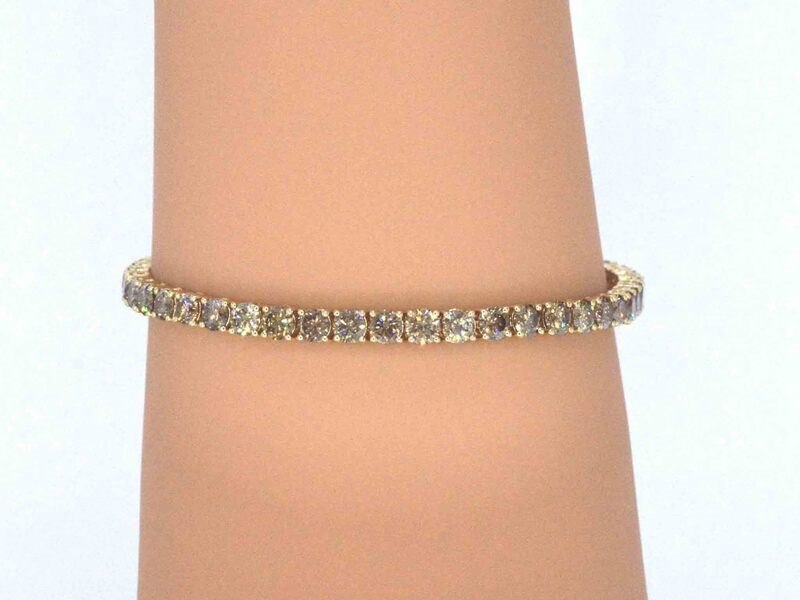 Product: Gouden armband met diamanten 10.00 carat Specificaties: Diamant: Natuurlijk Aantal: 45 stuks Slijpvorm: Briljant geslepen Gewicht (carat): 10.00 carat Kleur: Fancy goud - champagne - cognac Zuiverheid: VS-SI-P Slijpkwaliteit: Zeer mooi Juweel: Armband Gewicht: 12 gram Afmetingen/lengte: 17.5 cm Materiaal: 14k goud (585) Conditie: Nieuw Verpakking: Luxe sieradendoos Toelichting: De kwaliteit is overgenomen van het rapport behorend bij item. De waardebepaling is een beoordeling van een gecertificeerde diamantair, gebaseerd op consumentenprijzen. Consumentenprijs: € 27.563,-