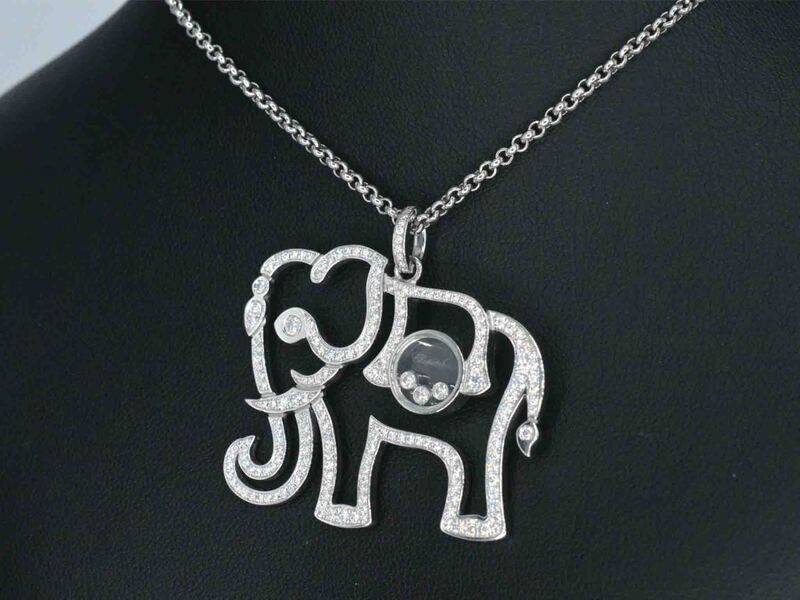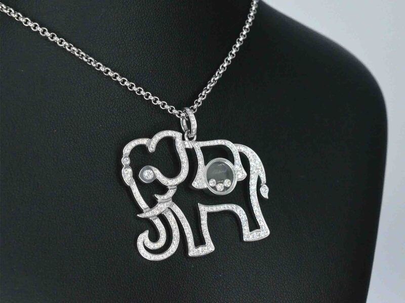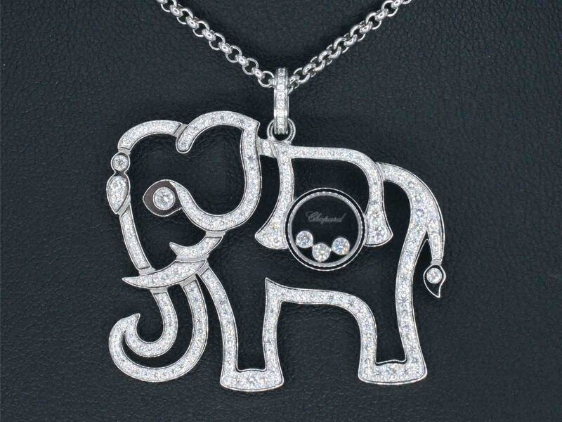 Product: Chopard - Happy diamonds olifant collier Specificaties: Diamant: Natuurlijk Aantal: 200 stuks Slijpvorm: Briljant geslepen Gewicht (carat): 2.00 carat Kleur: D-E Zuiverheid: VVS Slijpkwaliteit: Exceptioneel Juweel: Collier Merk: Chopard Model: Happy Diamonds Elephant Gewicht: 20 gram Afmetingen/lengte: 45 cm Materiaal: 18k goud (750) Conditie: Zo goed als nieuw Verpakking: Luxe sieradendoos Toelichting: De kwaliteit is overgenomen van het rapport behorend bij item. De waardebepaling is een beoordeling van een gecertificeerde diamantair, gebaseerd op consumentenprijzen. Extra informatie: Afmeting olifant is 3 x 3.5 cm. Komt in orgineel Chopard etui met echtheidscertificaat Consumentenprijs: € 17.500,-