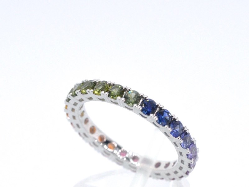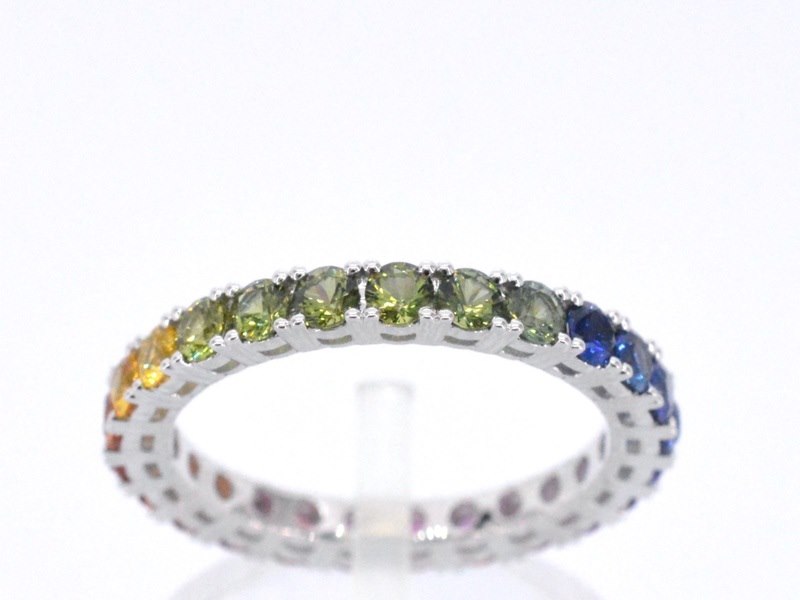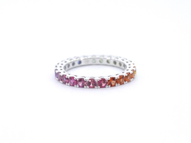 Product: Witgouden ring met multicolour saffieren Specificaties: Edelsteen: Saffieren Aantal: 25 stuks Slijpvorm: Briljant geslepen Gewicht (carat): 2.00 carat Kleur: Multicolour Slijpkwaliteit: Very good Juweel: Ring Gewicht: 2.5 gram Ringmaat (op maat gemaakt*): 53 (17 mm) Materiaal: 18K goud (750) Conditie: Nieuw Verpakking: Luxe sieradendoos Toelichting: De kwaliteit is overgenomen van het rapport behorend bij item. De waardebepaling is een beoordeling van een gecertificeerde diamantair, gebaseerd op consumentenprijzen. Consumentenprijs: € 3.675,-