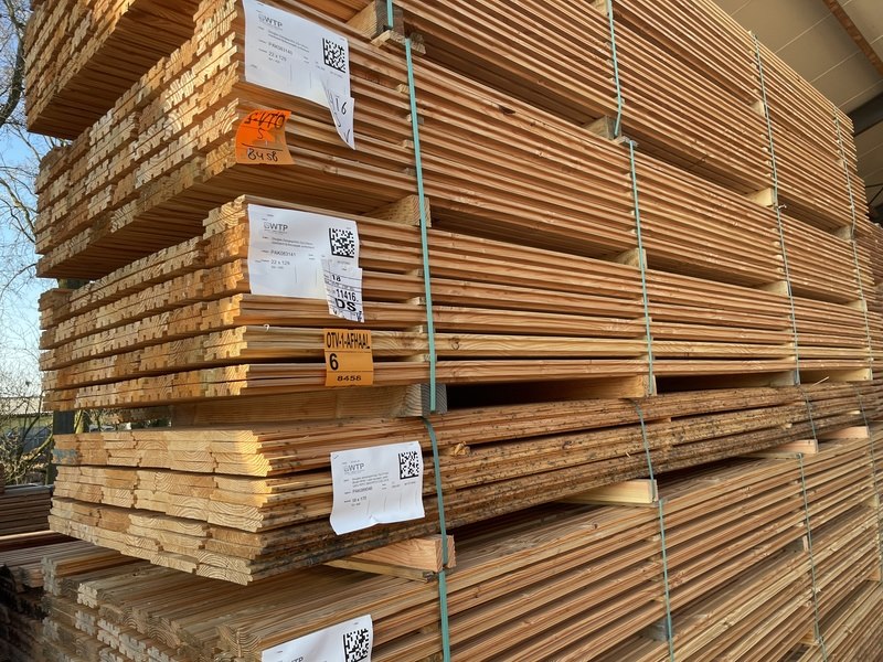 Product: Douglas Design- Triple- Deens profiel Materiaal: Douglas Afmeting: 22x142mm, lengte 400cm Conditie: nieuw