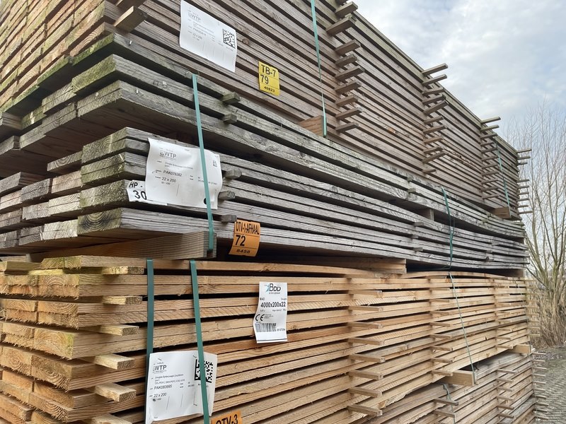 Ca. 38x douglas planken fijnbezaagd, 22x200mm, lengte 400cm