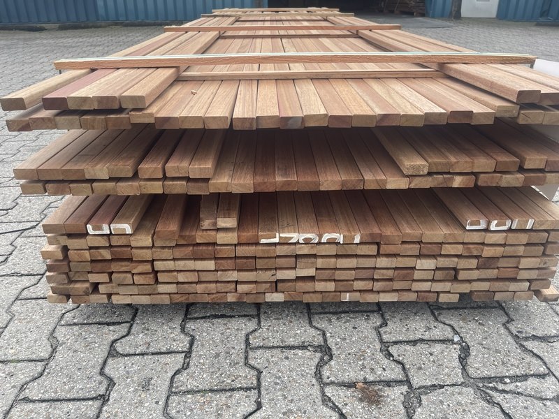 Ca. 217x guyana teak latten geschaafd, 21x40mm, lengte 102/365cm, 115/395cm