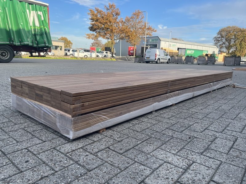 Ca. 48x guyana teak vlonderplanken gevingerlast, 21x120mm, lengte 400cm