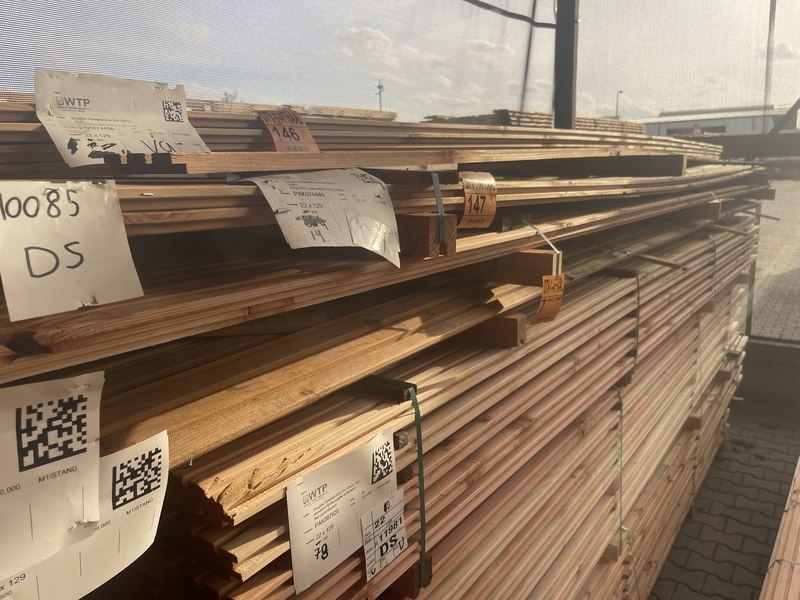 Product: Douglas Design- Triple- Deens profiel Materiaal: Douglas Afmeting: 22x142mm, lengte 400cm Conditie: nieuw