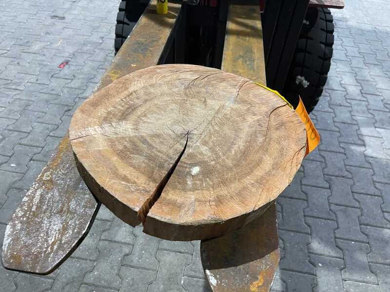 Product: Rosewood Schijf Materiaal: Rosewood Afmeting: Dikte 80mm, Ø 400mm Conditie: nieuw