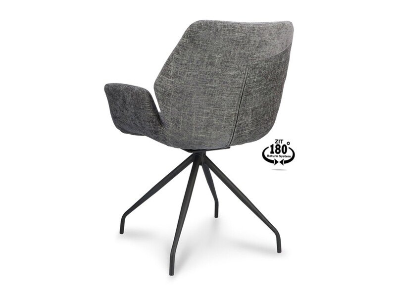 Product: Roterende eetkamerstoel Kleur: Grijs Conditie: nieuw Specificaties: Breedte: 62 cm Diepte: 61 cm Hoogte: 83 cm Zitdiepte: 43 cm Zithoogte: 49 cm Armhoogte: 63cm Materiaal: Stof microleder en stalen poten