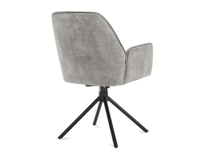 Product: Roterende eetkamerstoel Kleur: Clay Conditie: nieuw Specificaties: Breedte: 60cm Diepte: 64cm Hoogte: 88cm Armhoogte: 65cm Materiaal: Stof adore velvet en stalen poten