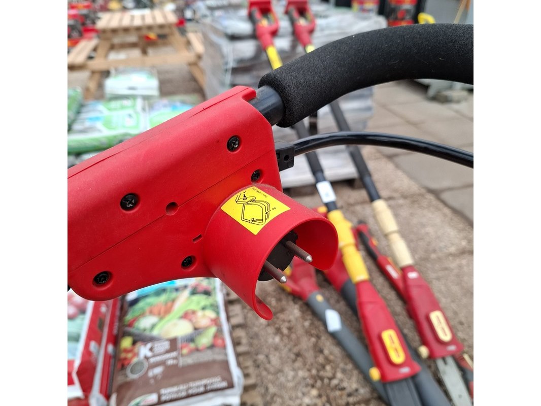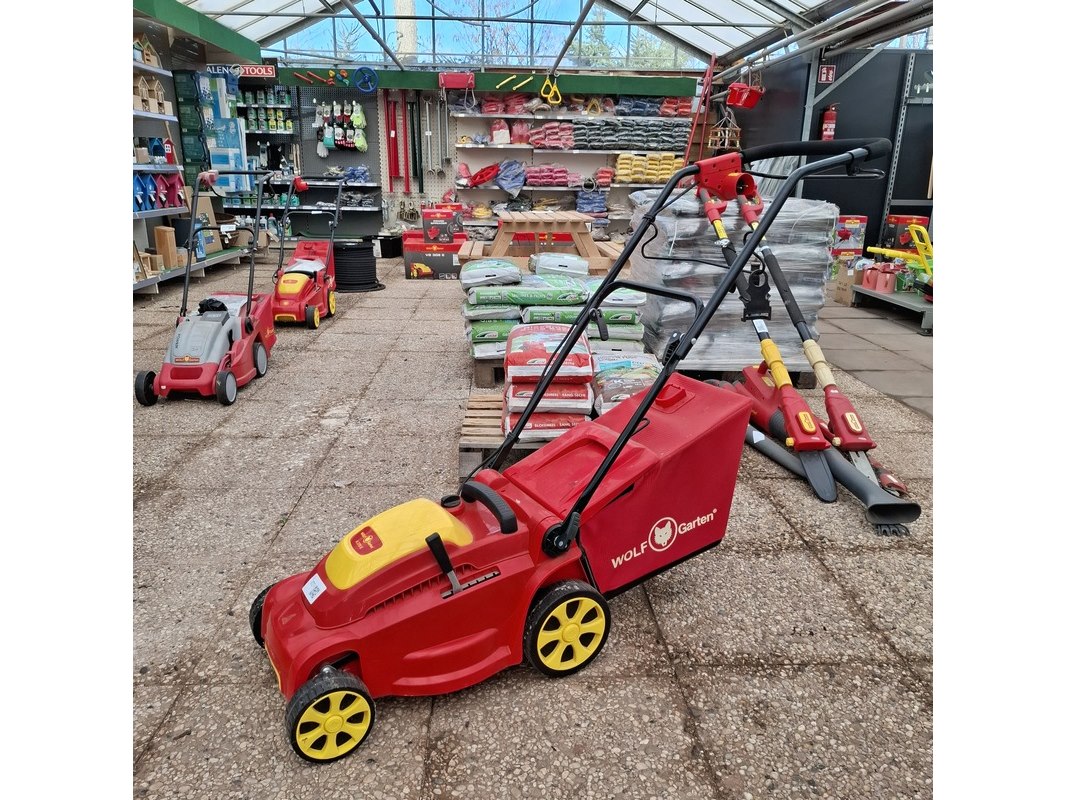 Merk: Wolf Garten Product: Elektrische grasmaaier Afmeting: Lxb ca. 150x40 cm. Specificaties: 1,6 kW, 230V, eigen gewicht 15kg.