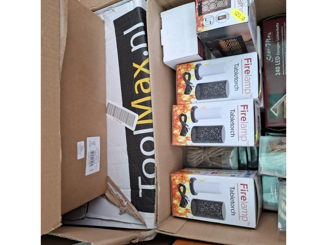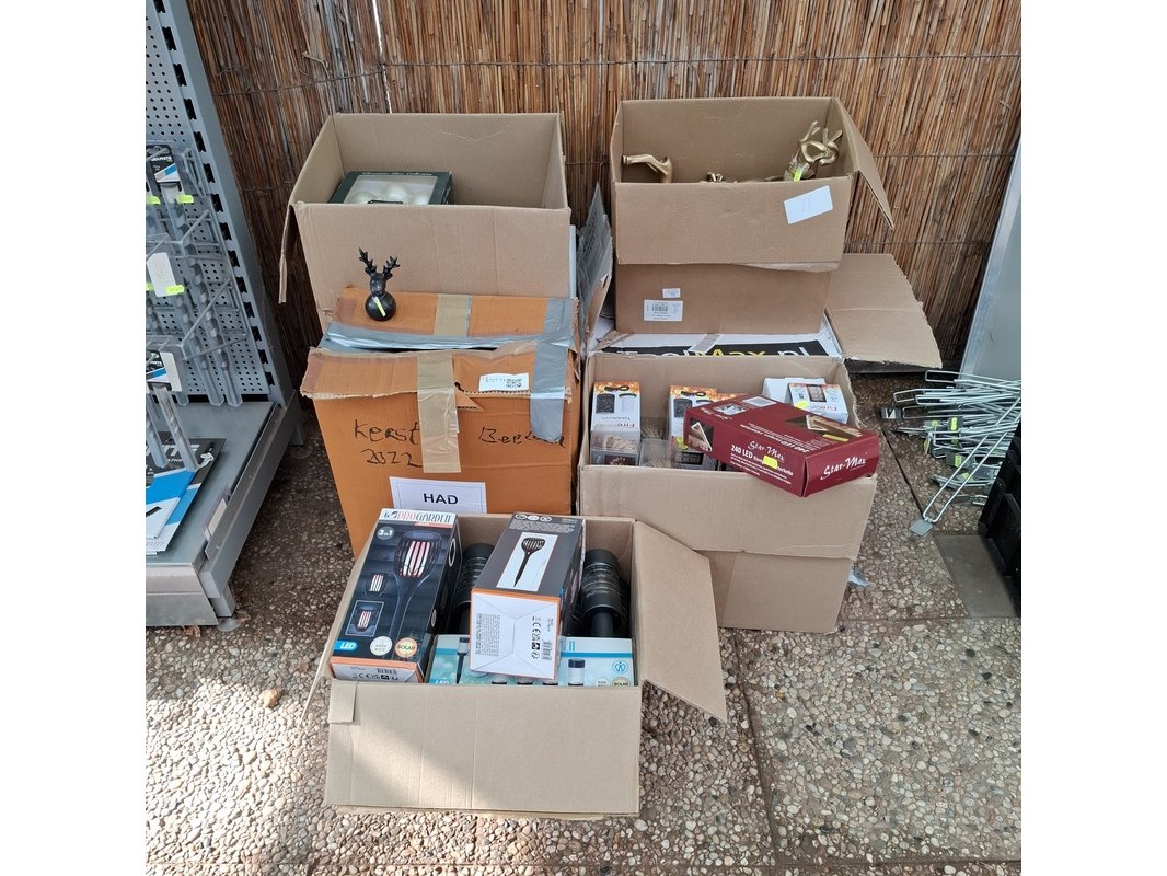 Merk: o.a. Christmas Finesse Product: Assortiment kerstbenodigdheden Specificaties: Bestaande uit o.a. kerstballensets, beeldjes, tuinlampen, kerstverlichting etc.