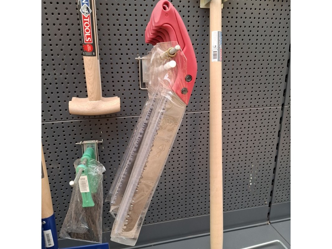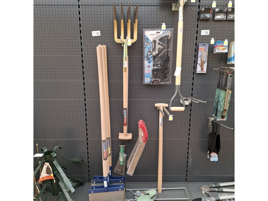 Merk: Talen Tools Product: Assortiment tuingereedschap Specificaties: Bestaande uit o.a. takkenschaar, spitvorken, betonschrapers, takkenzagen, ballastschop etc. In 1 meter stelling.