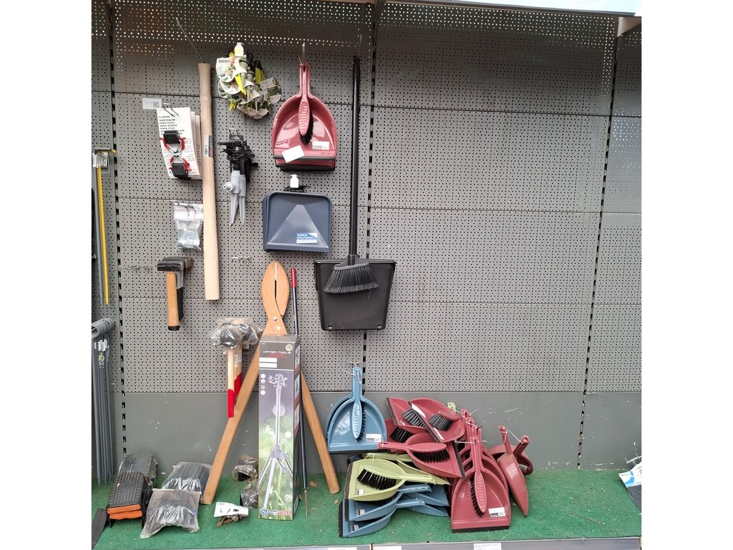 Merk: o.a. Talen Tools, Iriso Product: Partij diversen Specificaties: Bestaande uit o.a. stoffen en blikken, kniebeschermers, mokers, hamers etc. In 1 meter stelling.