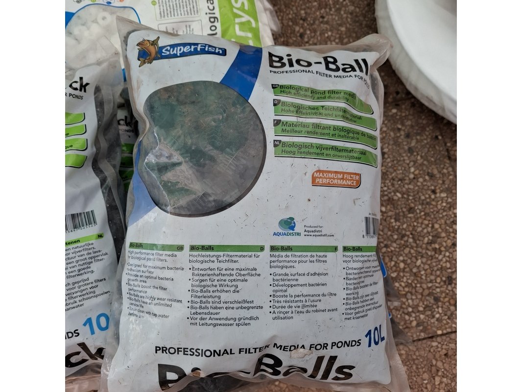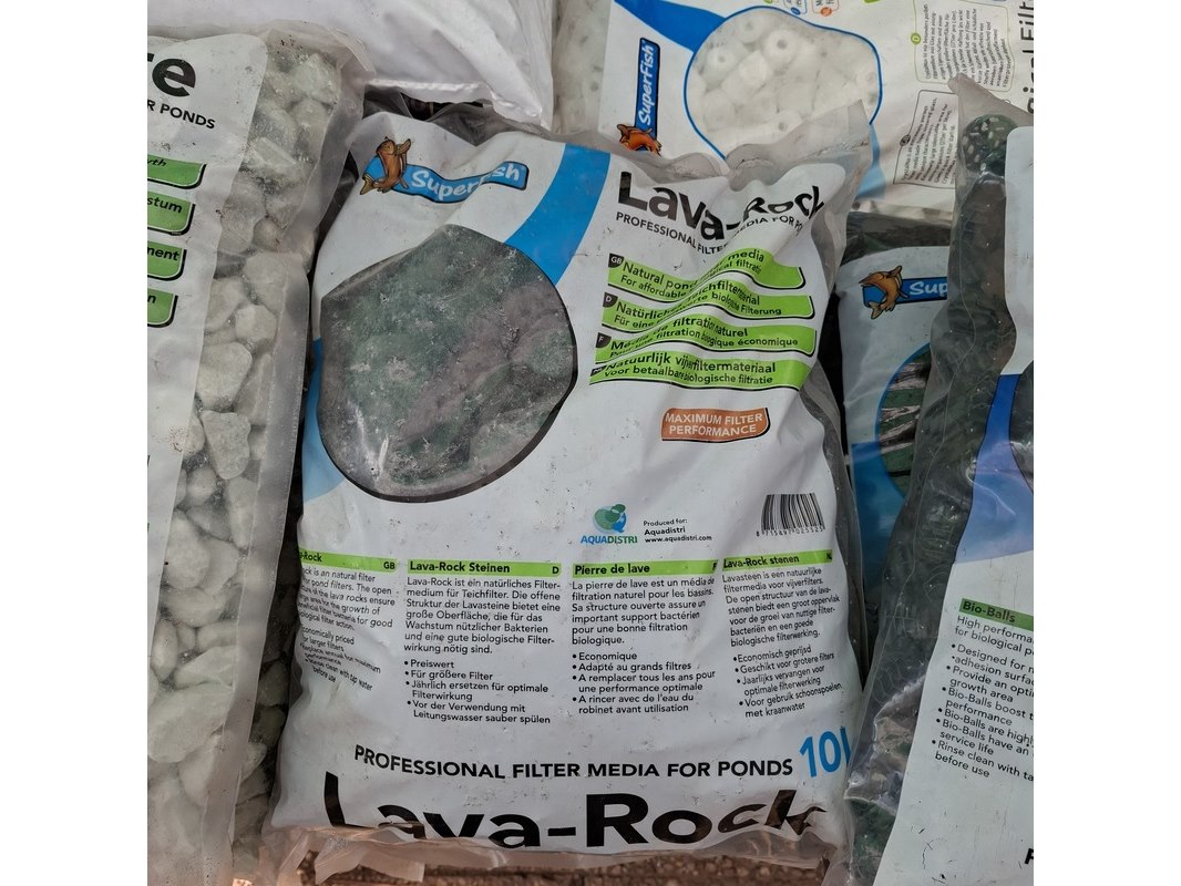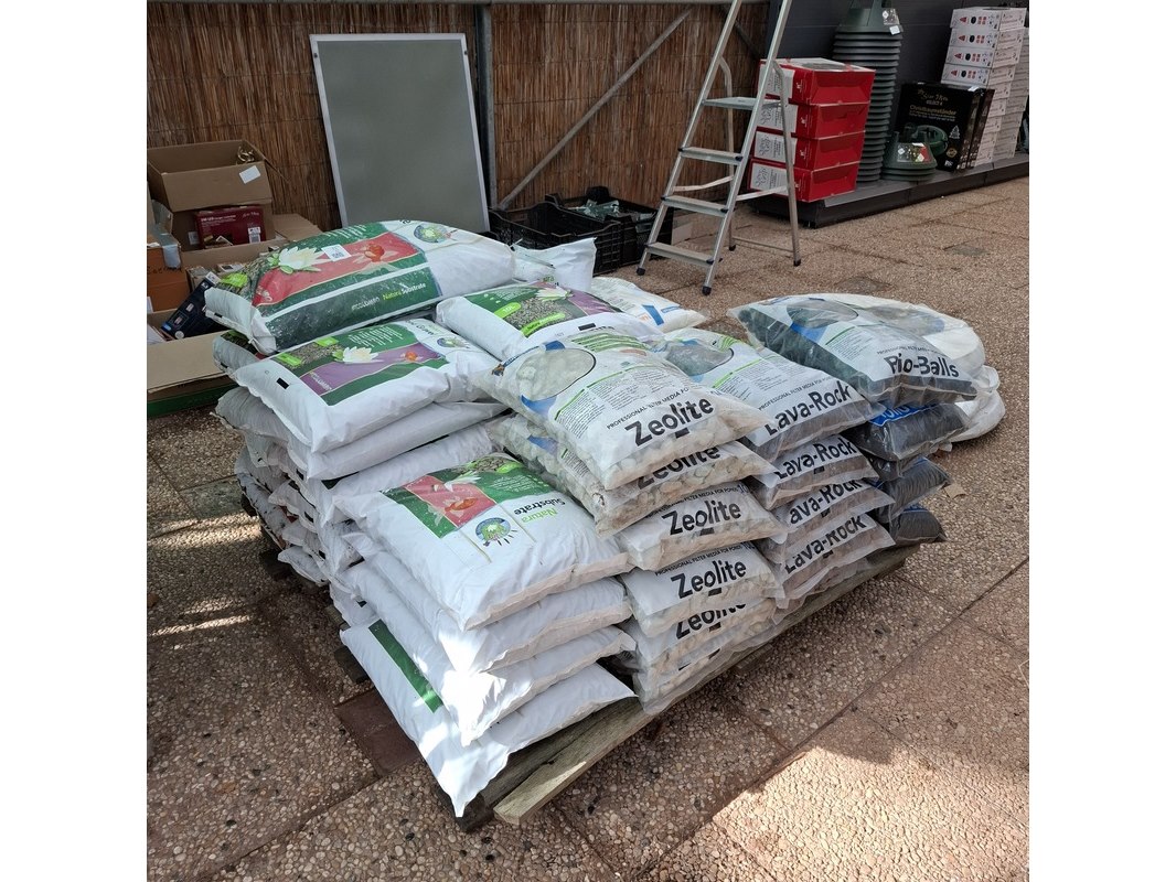 Merk: o.a. Zeolite, SuperFish Product: Partij vijvergrind en filtermateriaal