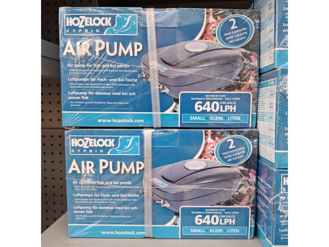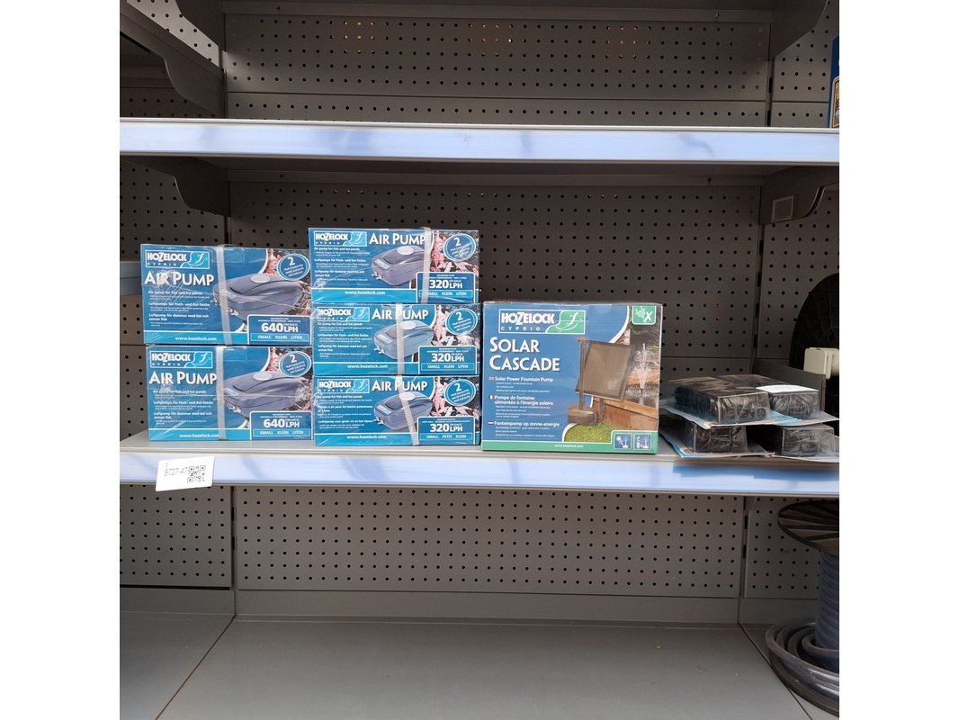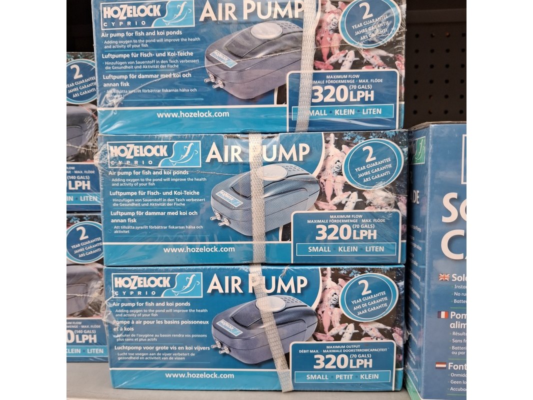 Merk: Hozelock Product: Diverse pompen Specificaties: Bestaande uit 5x Luchtpomp, 3x fonteinpomp en 4x verlengkabel.