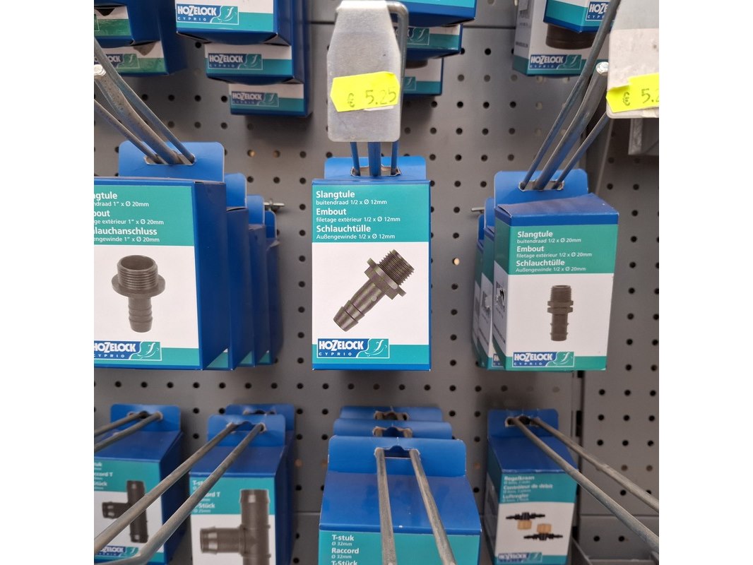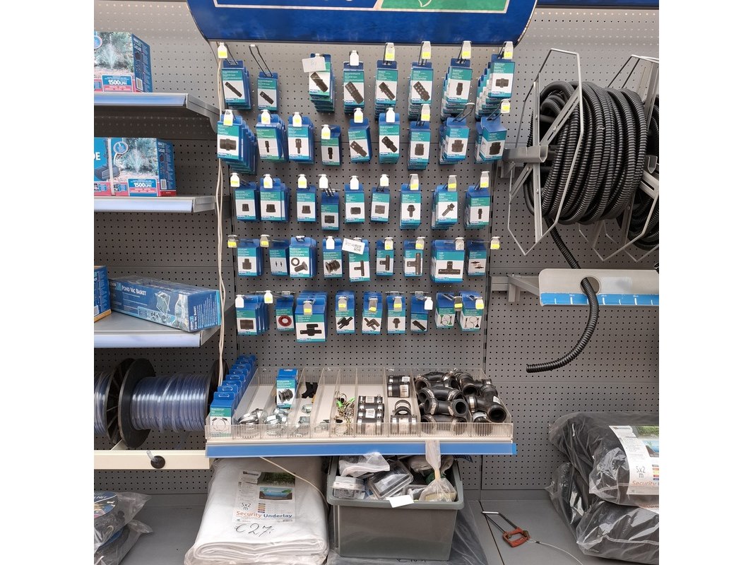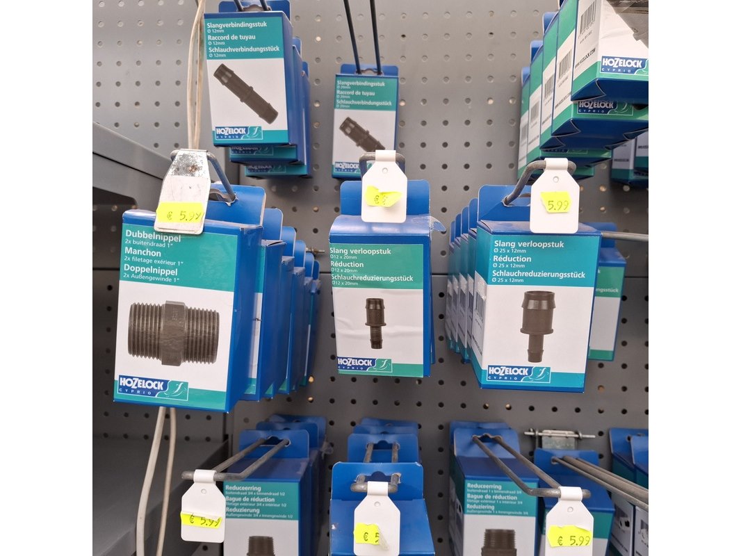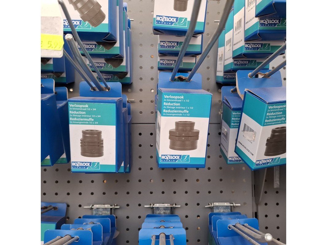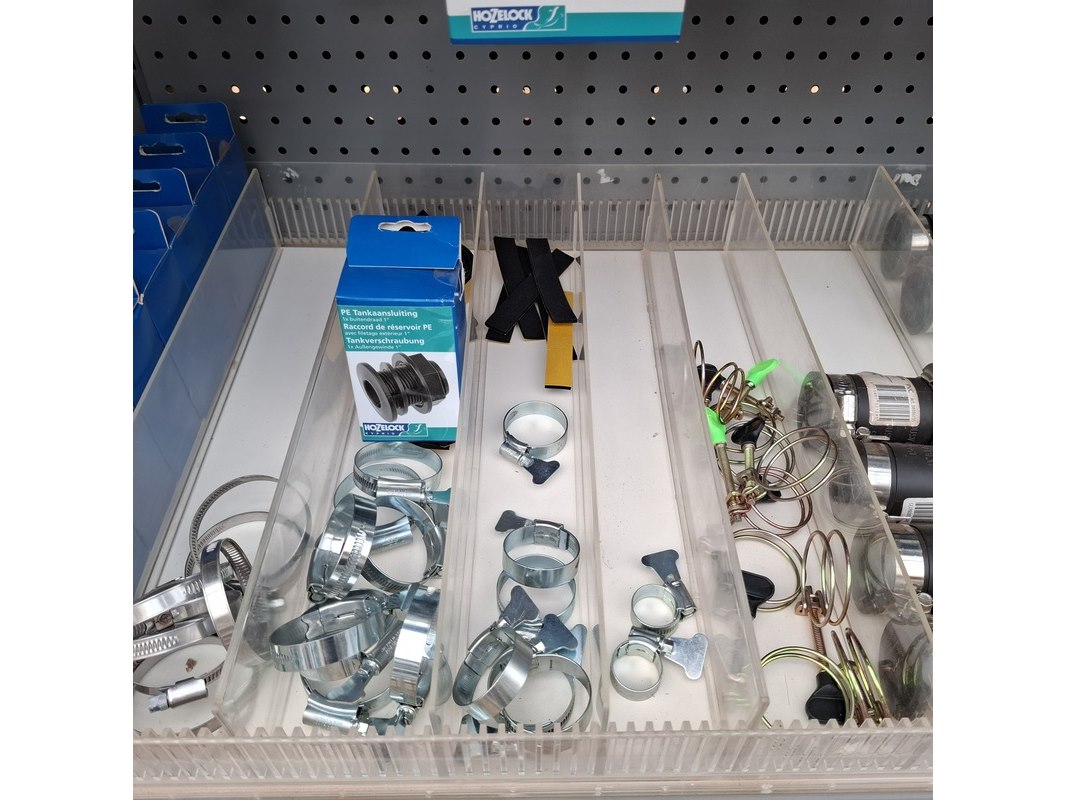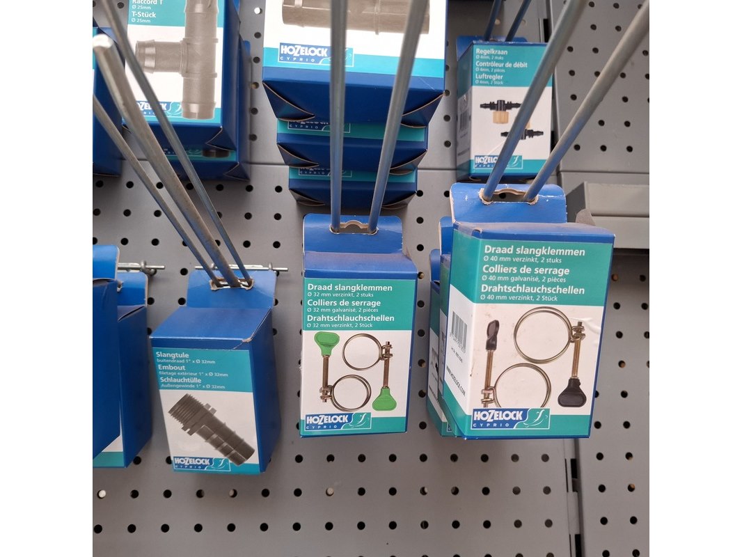 Merk: o.a. Hozelock Product: Assortiment vijver benodigdheden Specificaties: Bestaande uit o.a. koppelstukken, slangenklemmen, sokken, ringen, vijverdoeken etc. In 1 meter stelling.