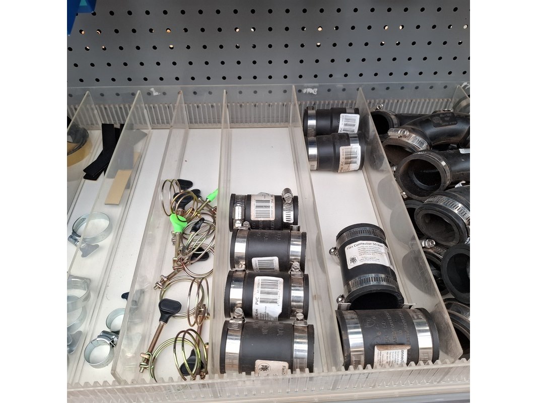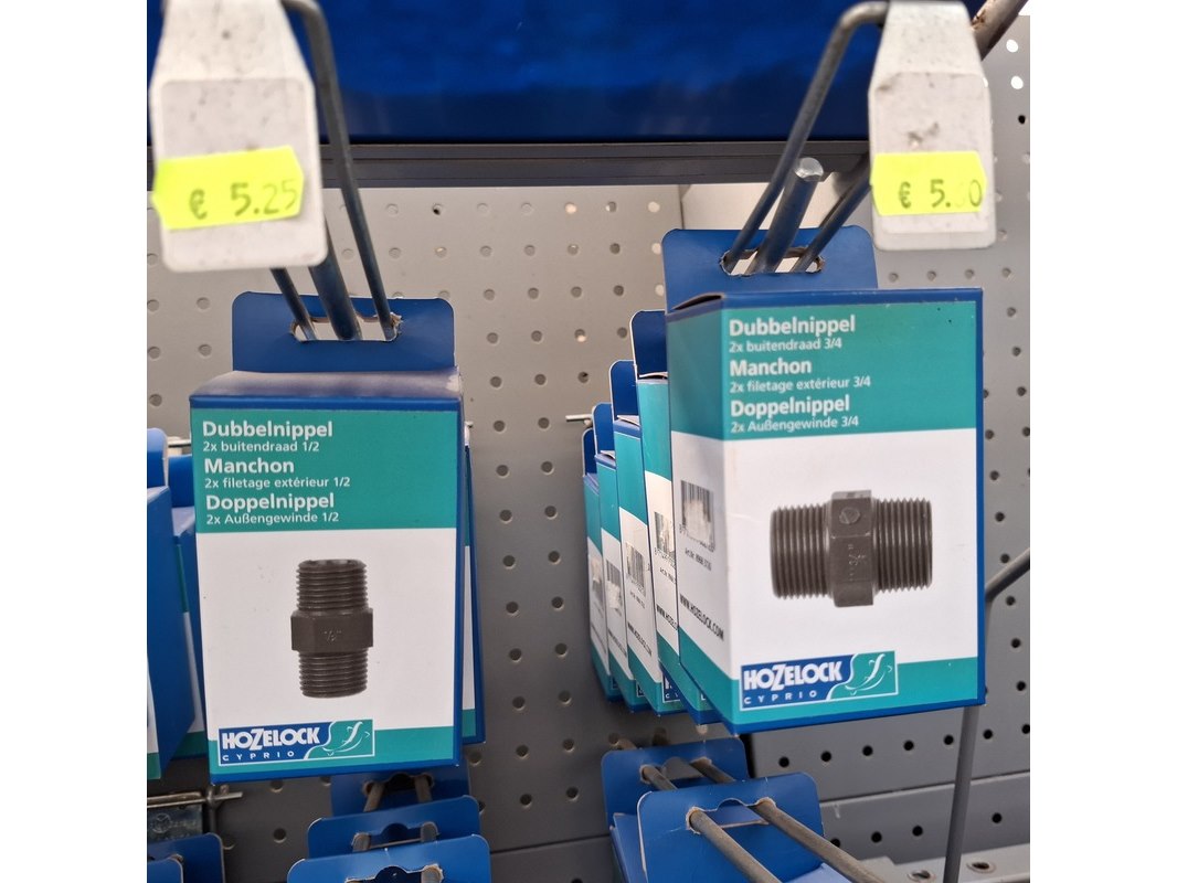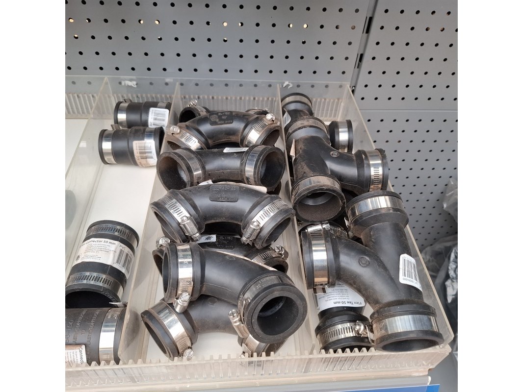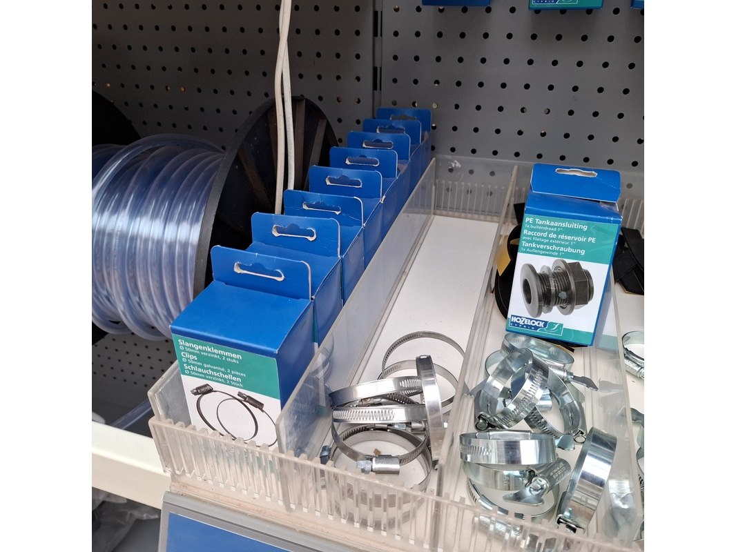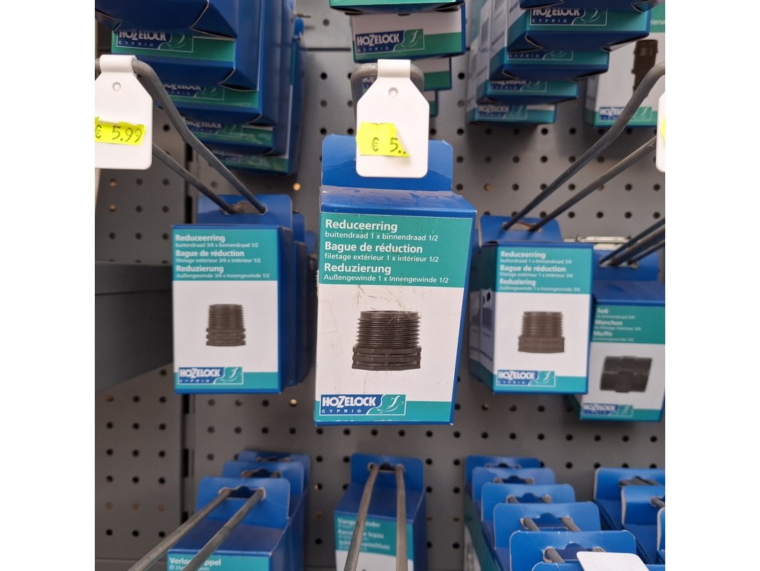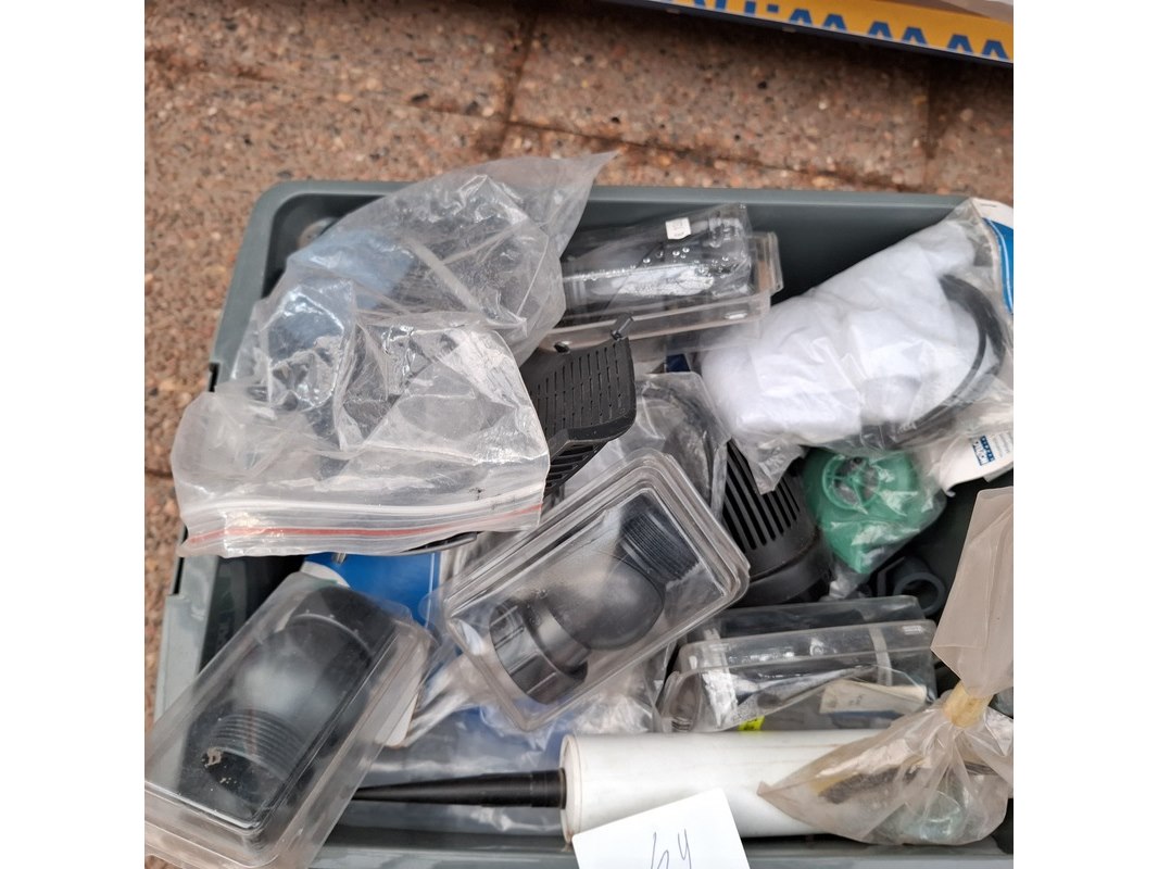 Merk: o.a. Hozelock Product: Assortiment vijver benodigdheden Specificaties: Bestaande uit o.a. koppelstukken, slangenklemmen, sokken, ringen, vijverdoeken etc. In 1 meter stelling.