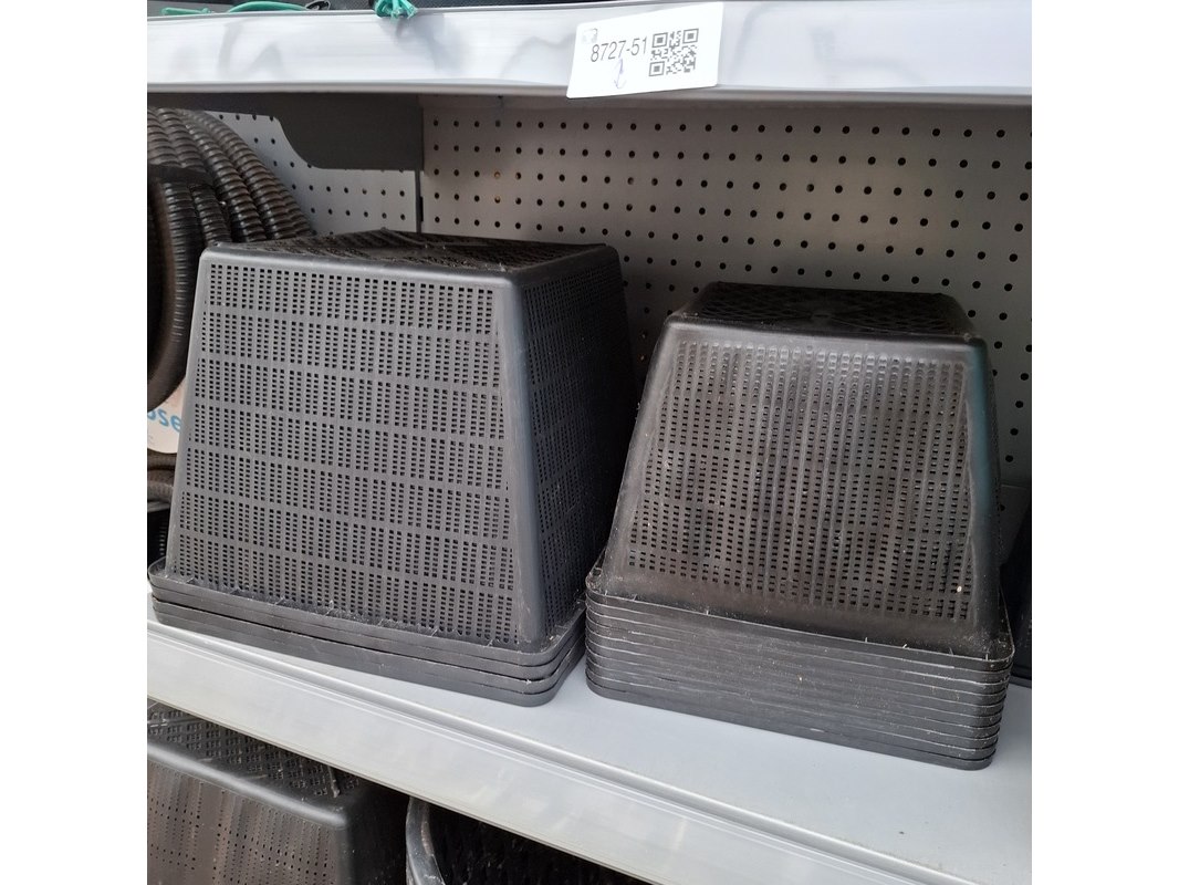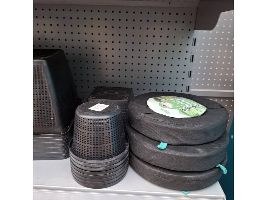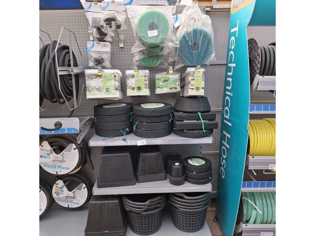 Merk: o.a. SuperFish, Velda Product: Assortiment vijver benodigdheden Specificaties: Bestaande uit vijverplantenbakken en filtermateriaal. In 1 meter stelling.