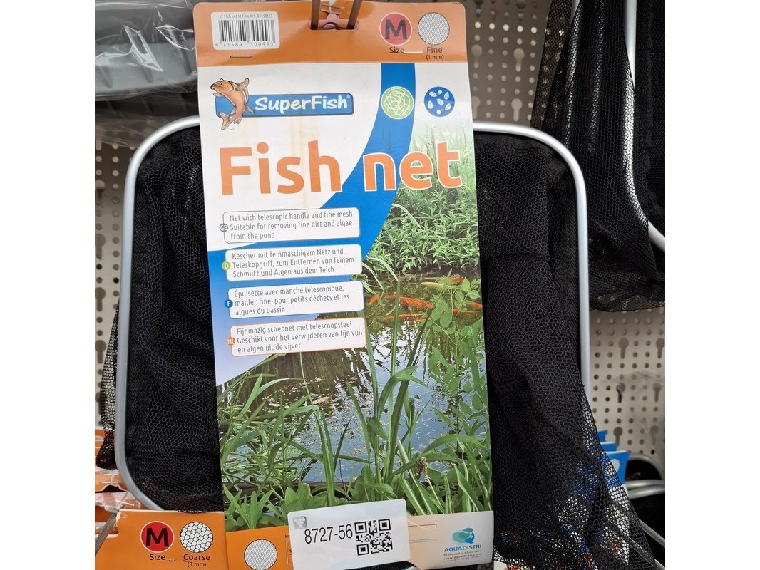 Merk: SuperFish Product: Assortiment visnetten Specificaties: Diverse soorten en maten. In 1 meter stelling.