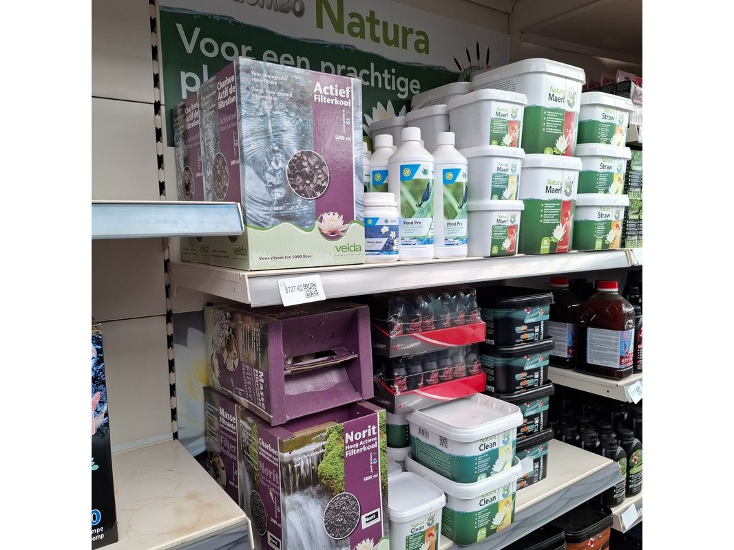 Merk: o.a. Natura, Velda Product: Assortiment vijver benodigdheden Specificaties: Bestaande uit o.a. filterkool en mineralen.
