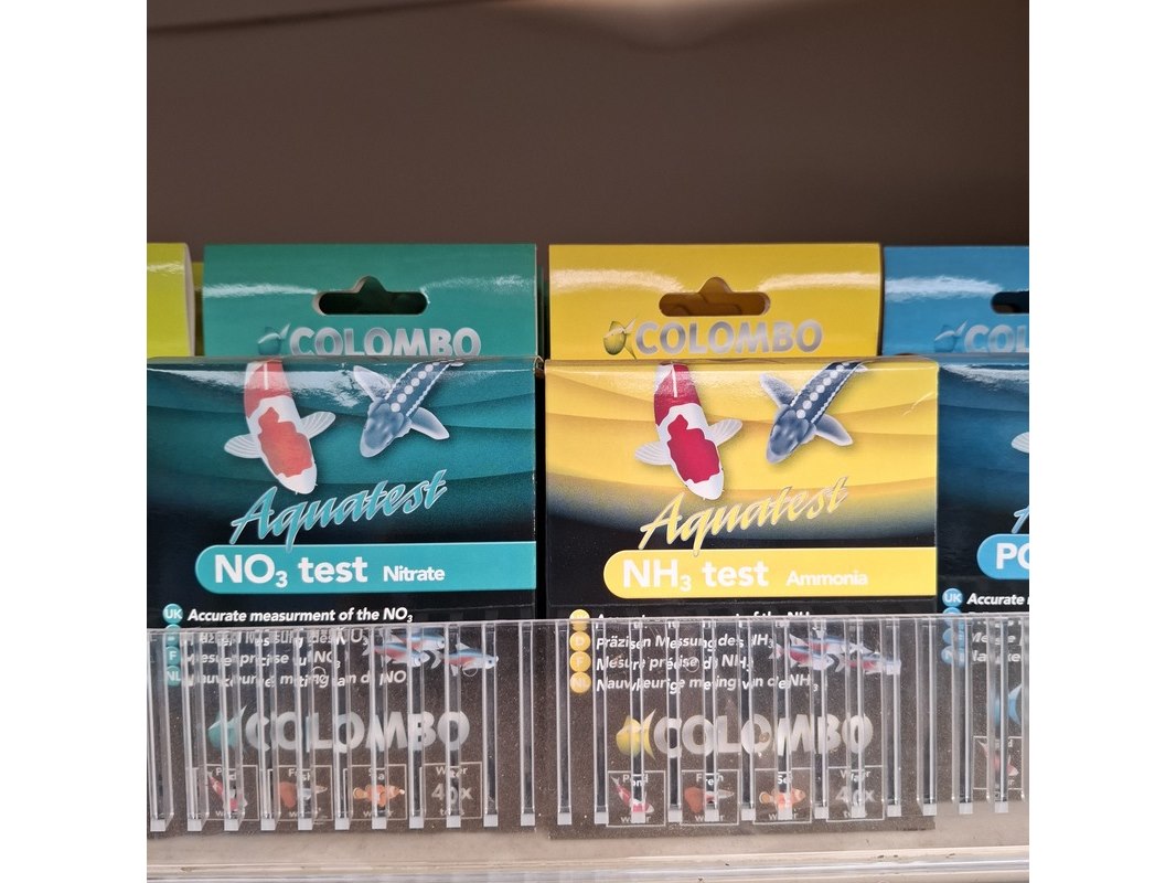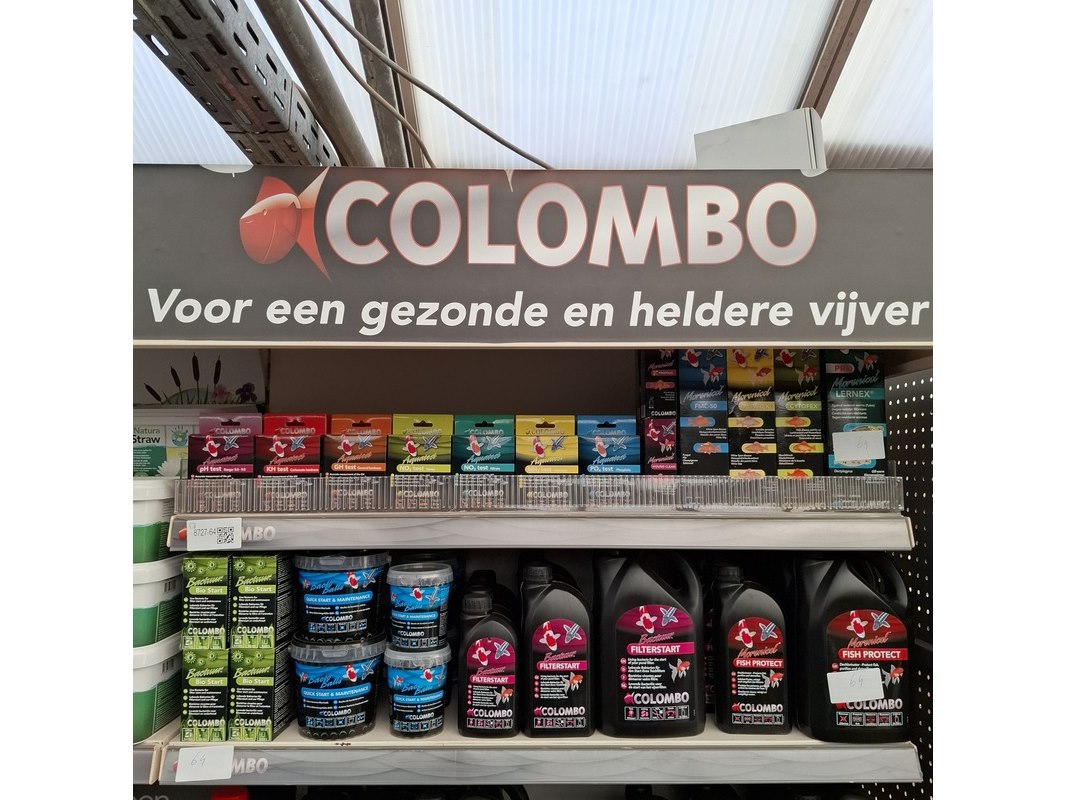 Merk: Colombo Product: Assortiment vijver benodigdheden Specificaties: Bestaande uit pH testen en beschermingsmiddelen.