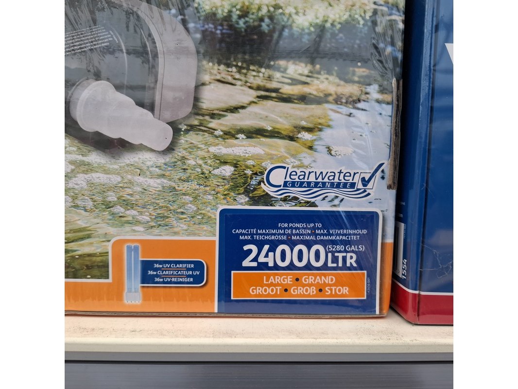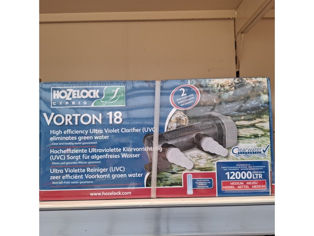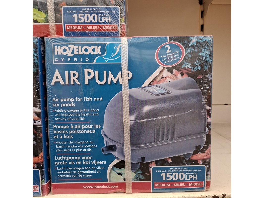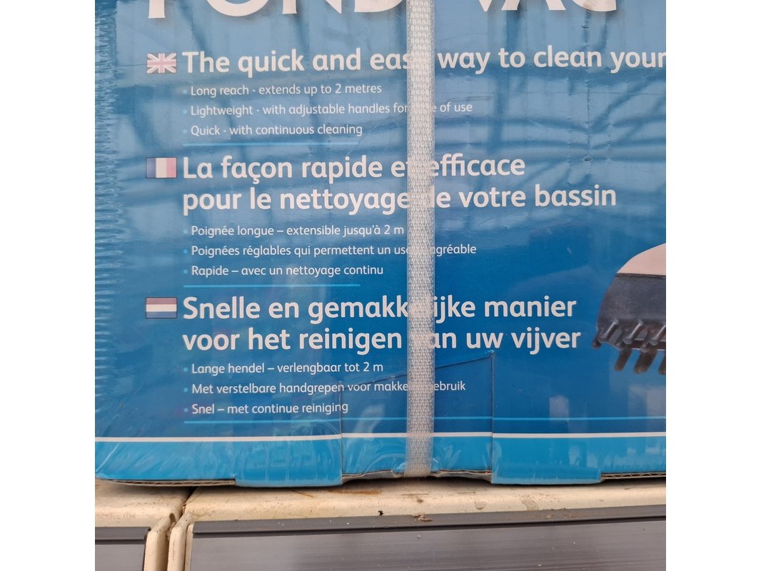 Merk: Hozelock Product: Assortiment vijver benodigdheden Specificaties: Bestaande uit o.a. vijver stofzuiger, UV reinigers, filterpompen, luchtpompen etc. In 1 meter stelling.