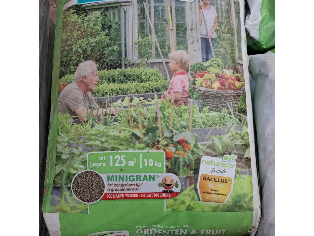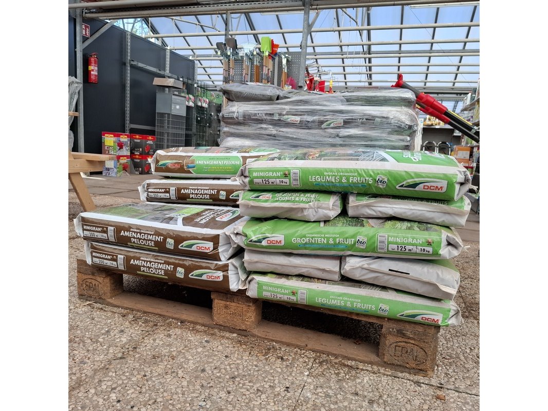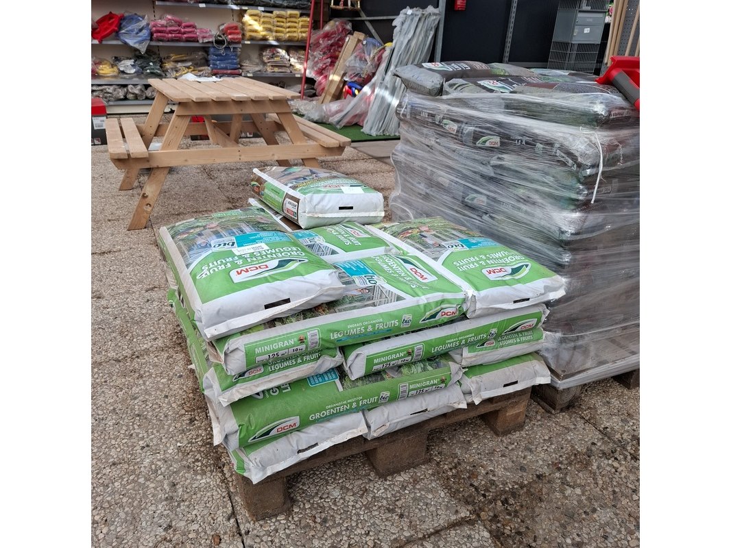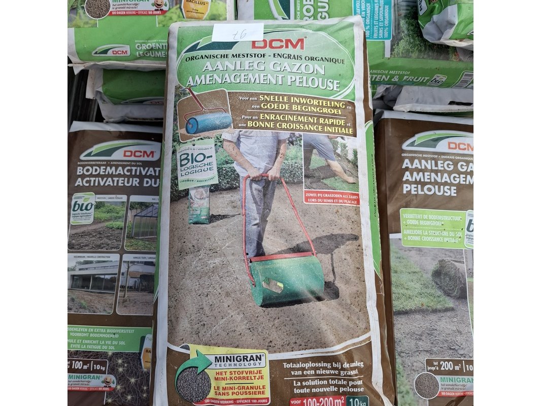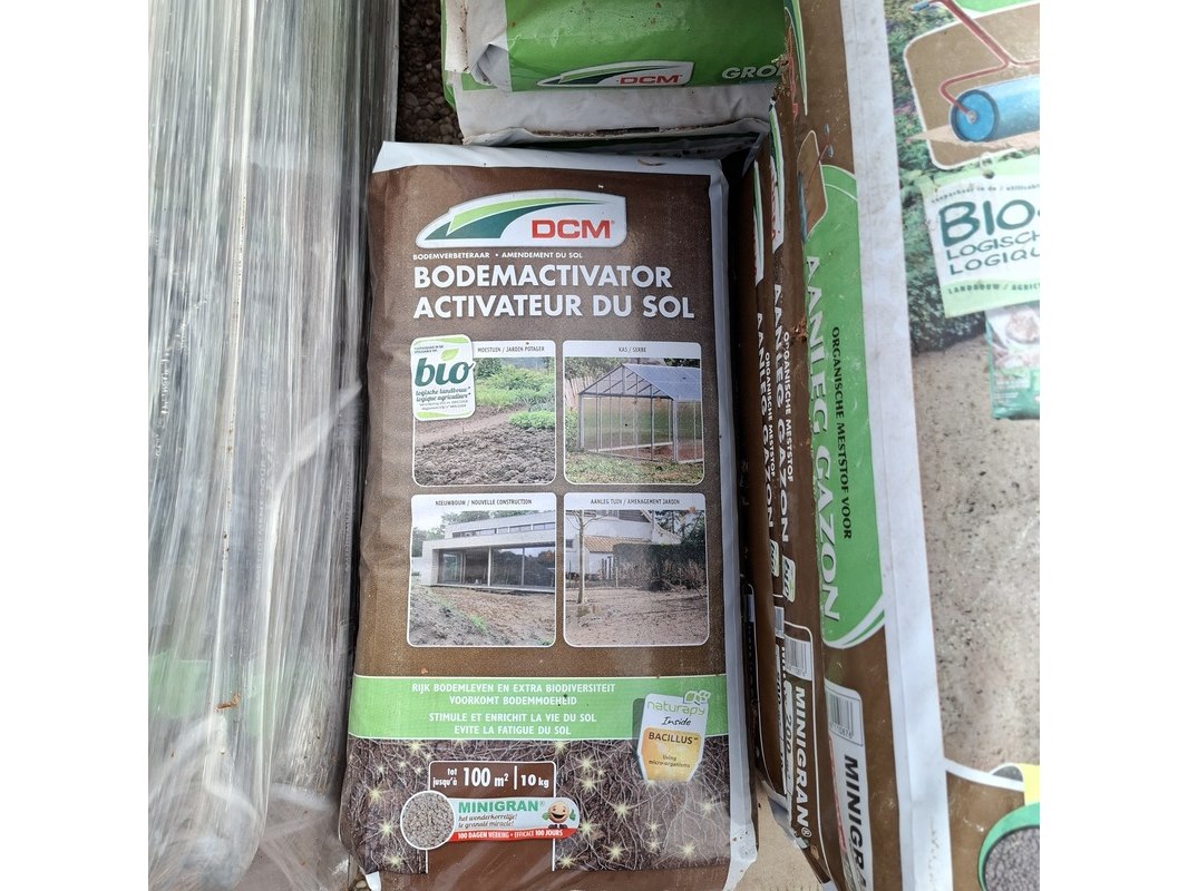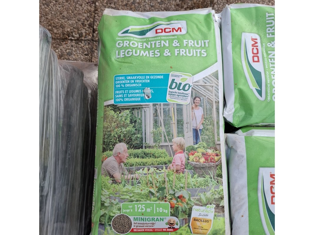 Merk: DCM Product: Partij organische meststof Afmeting: Gewicht per zak 10kg.