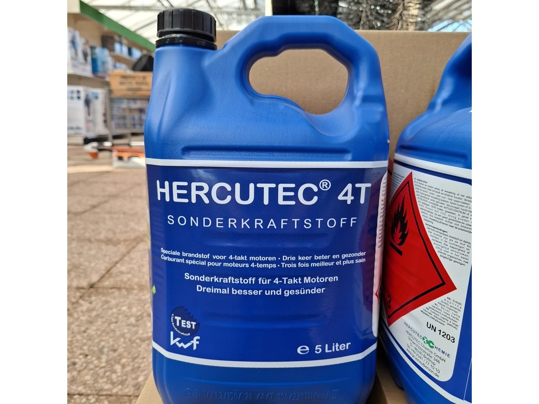Merk: Hercutec Product: 4-takt benzine Afmeting: Inhoud 5l.