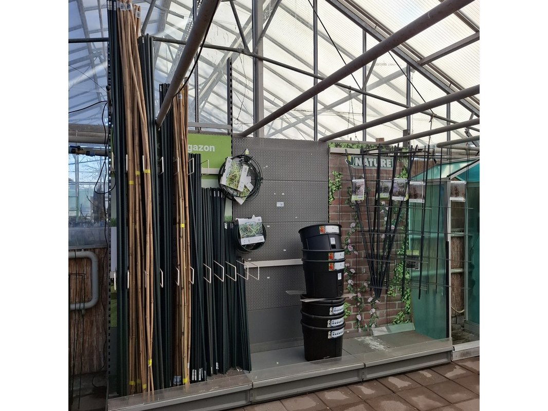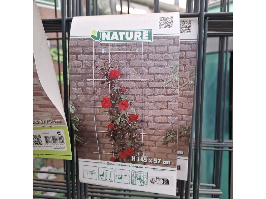 Merk: o.a. Nature Product: Assortiment tuin benodigdheden Specificaties: Bestaande uit metalen klimrekken, tomaat- en aardappel groeipotten, diverse stokken.
