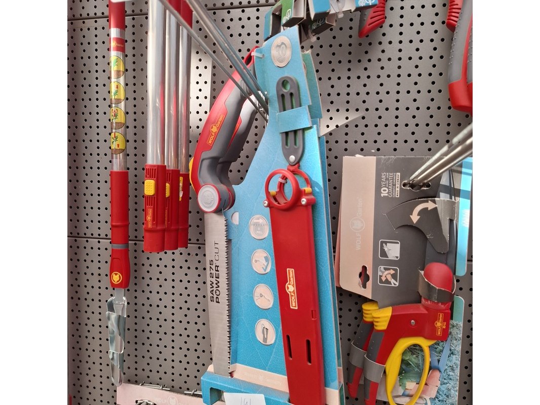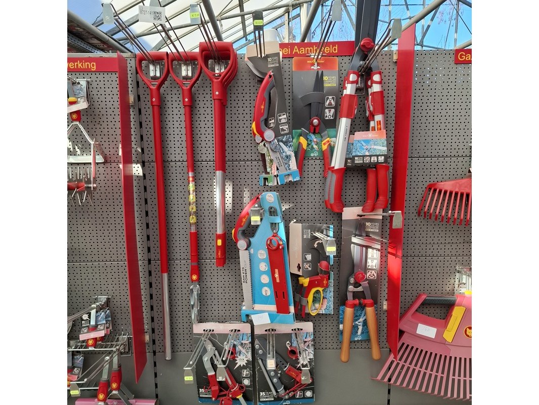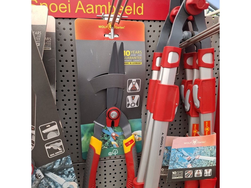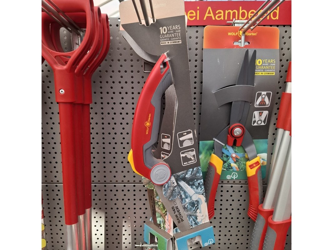 Merk: Wolf Garten Product: Partij tuingereedschap Specificaties: Bestaande uit o.a. heggenscharen, zagen, stelen etc.