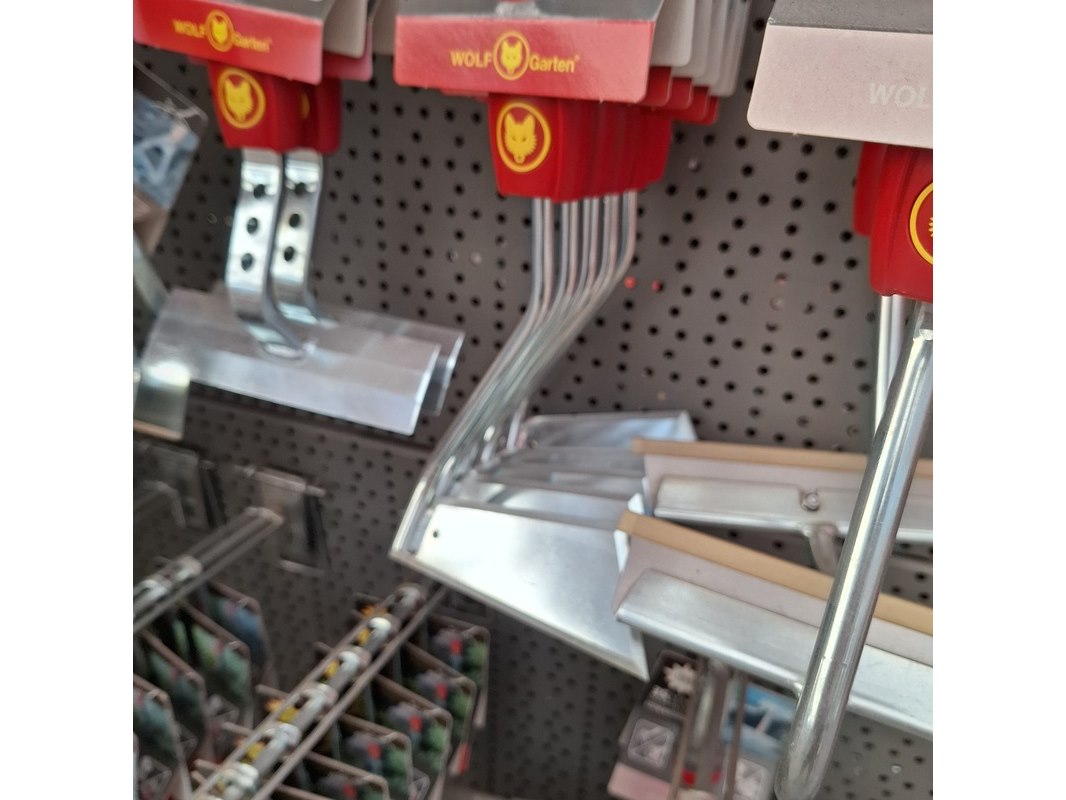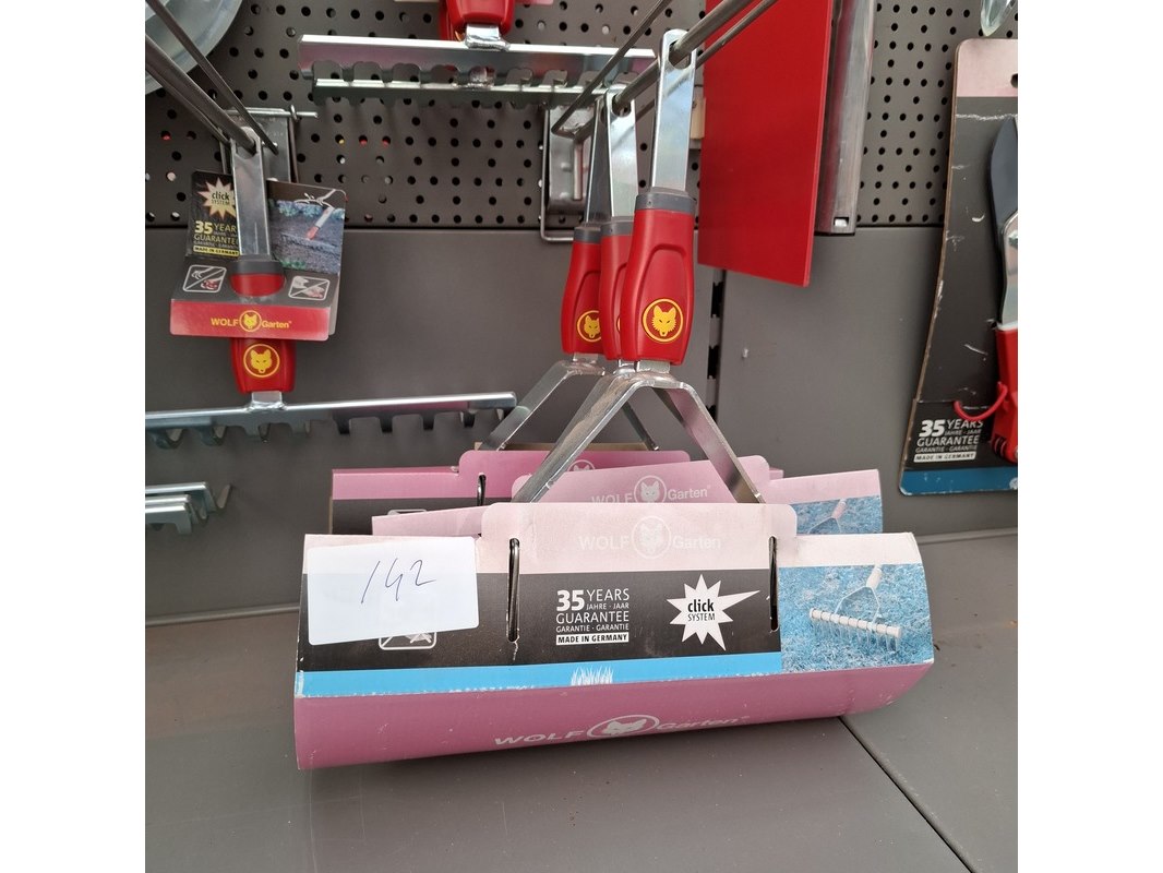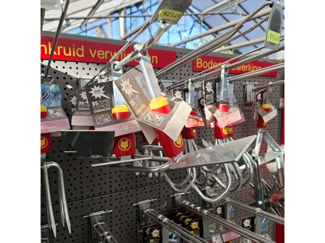 Merk: Wolf Garten Product: Assortiment tuingereedschap opzetstukken Specificaties: Bestaande uit o.a. schoffels, harken, onkruid krabbers etc.