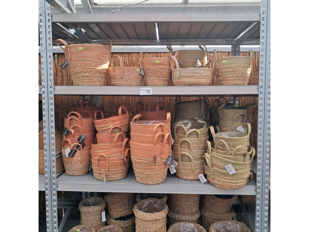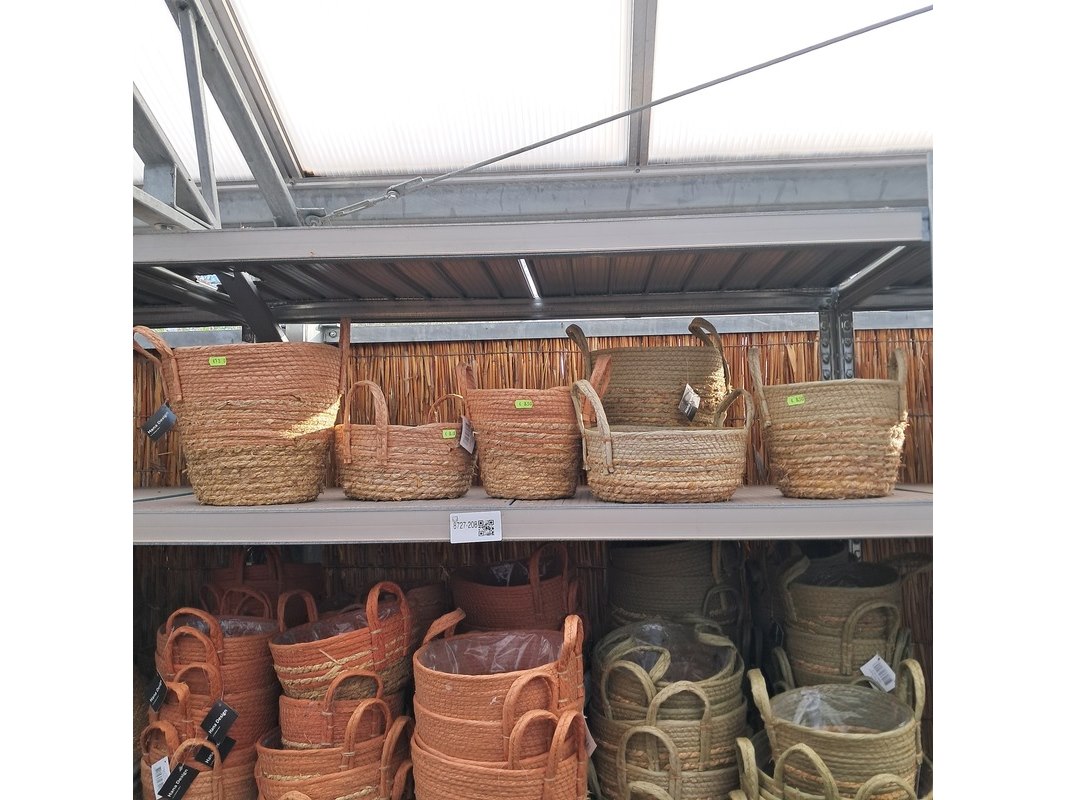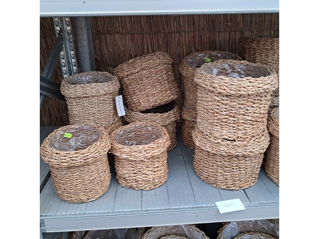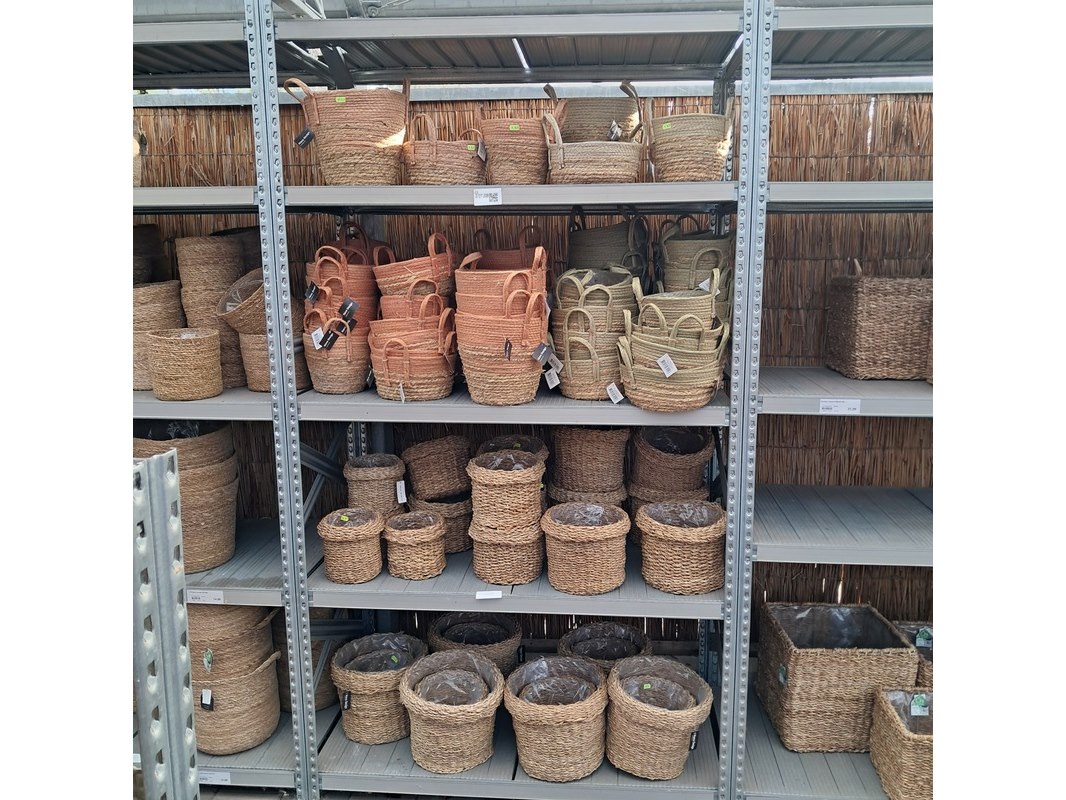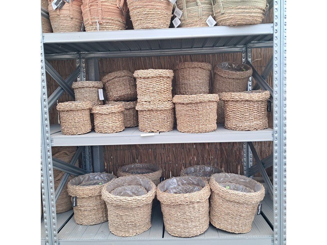 Merk: o.a. Hana Design Product: Partij bloemmanden Afmeting: o.a. hxb ca. 23x28 cm. Specificaties: Diverse soorten en maten. In 1 meter stelling.