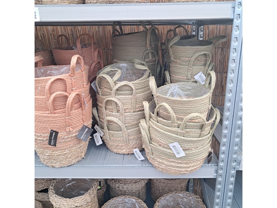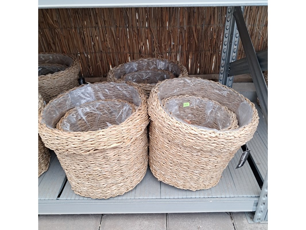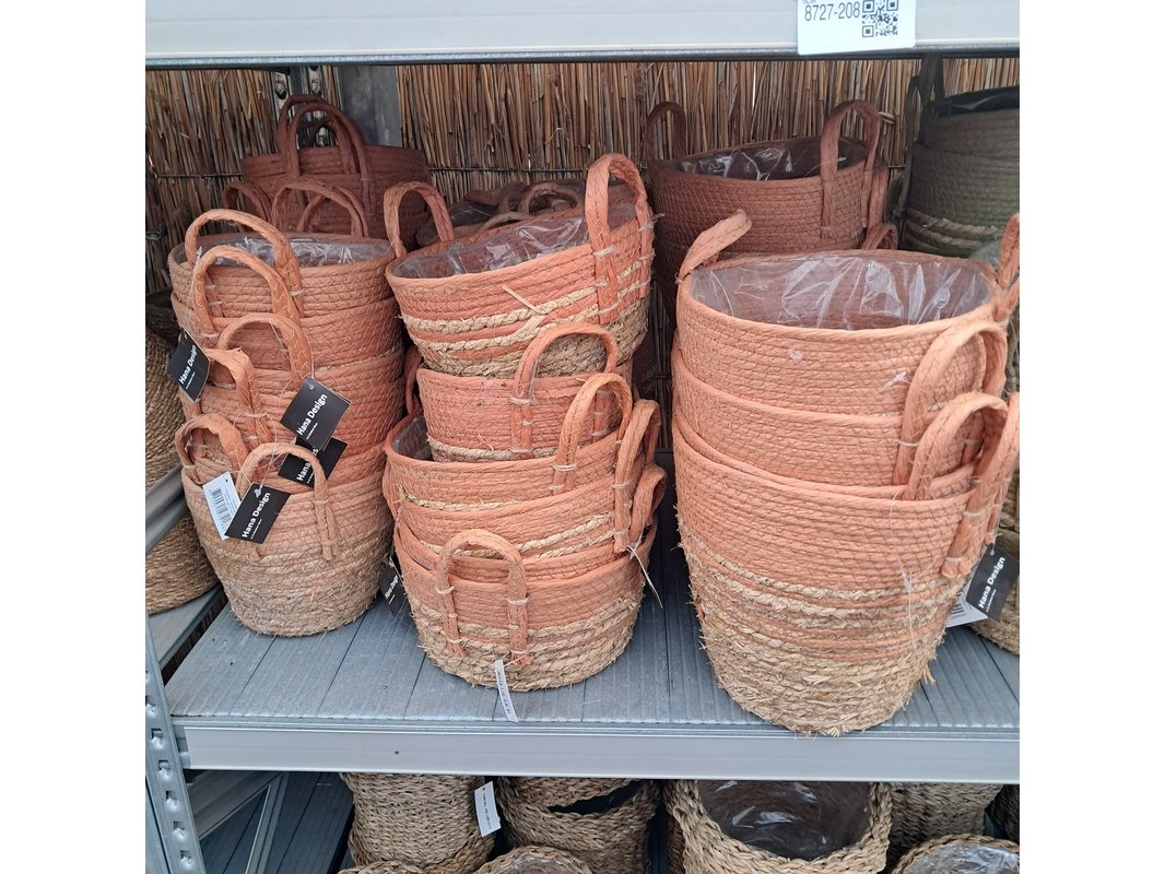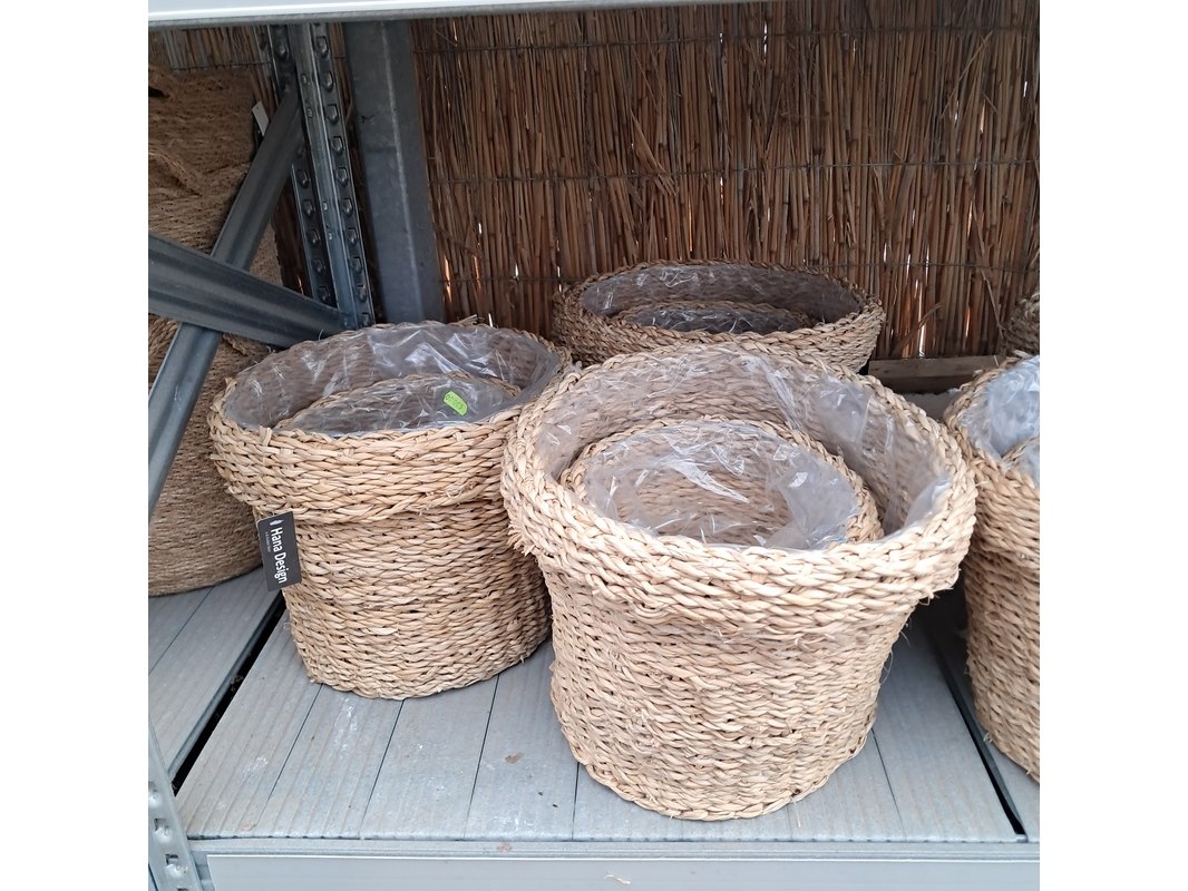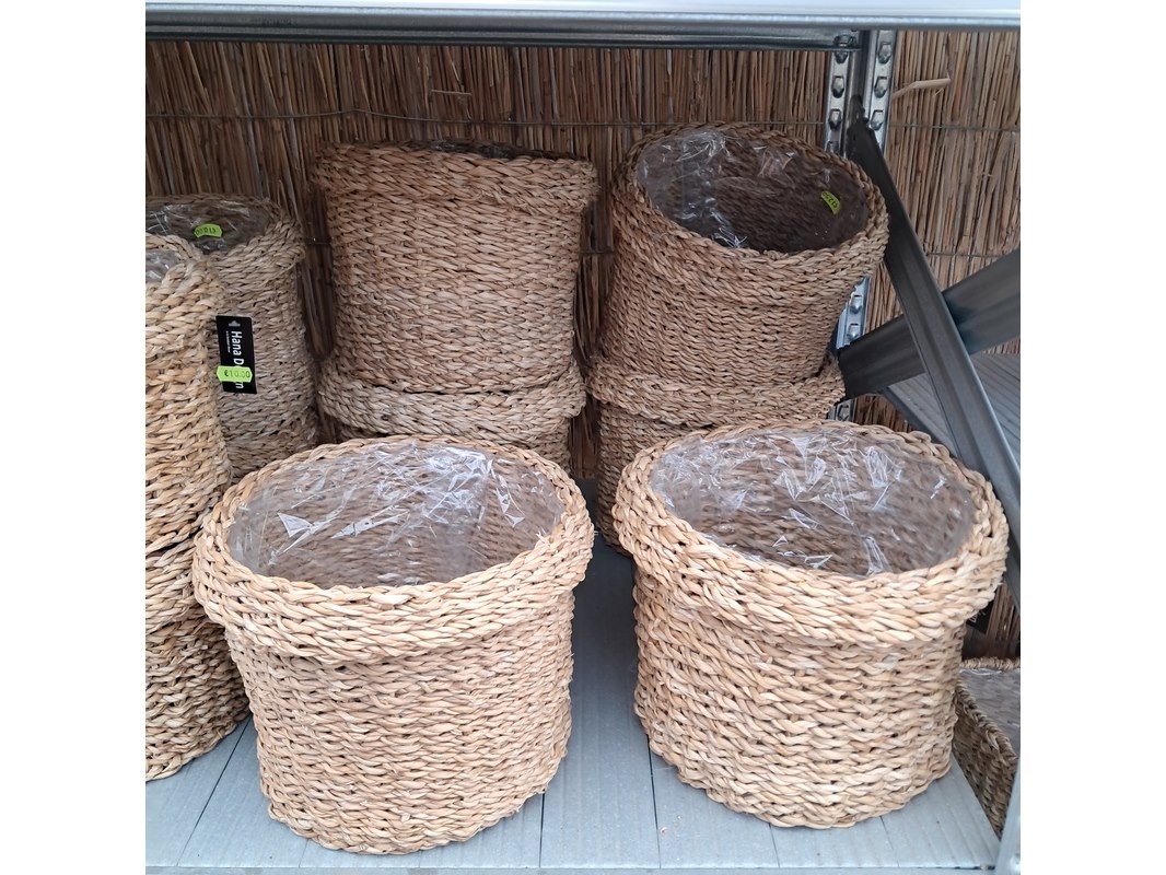 Merk: o.a. Hana Design Product: Partij bloemmanden Afmeting: o.a. hxb ca. 23x28 cm. Specificaties: Diverse soorten en maten. In 1 meter stelling.