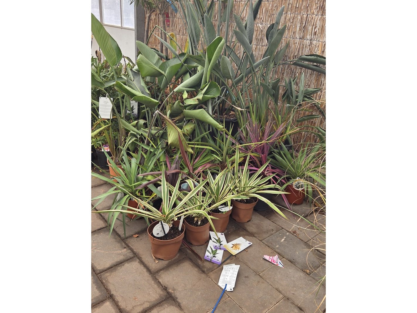 Product: Partij planten Specificaties: Bestaande uit o.a. paradijsvogelbloem, gouden lotus, ficus little figgy etc.
