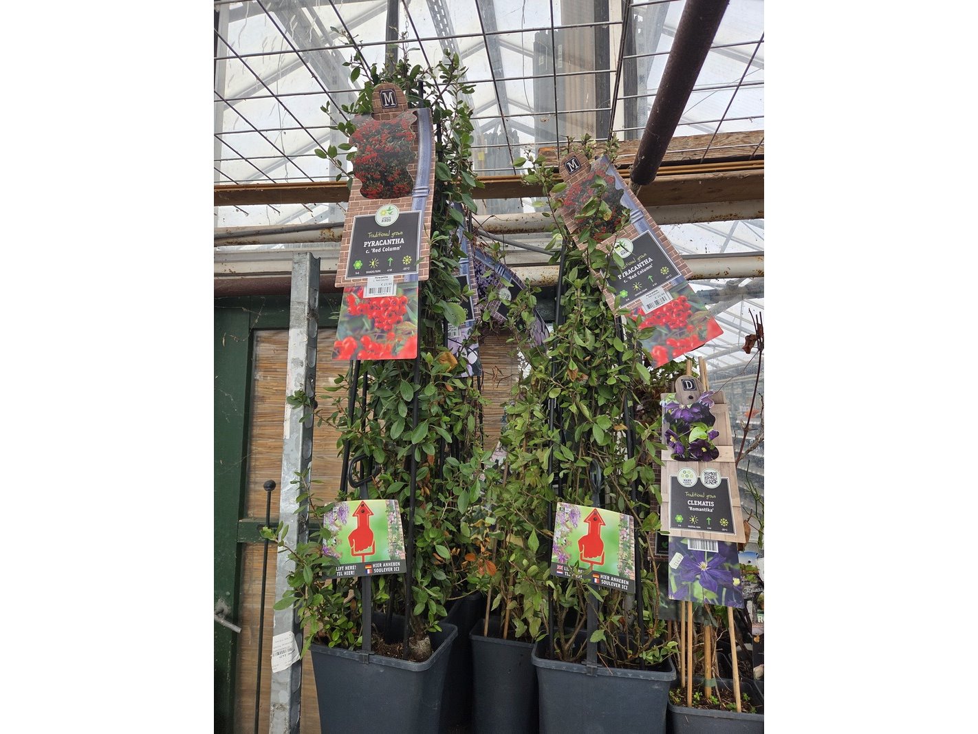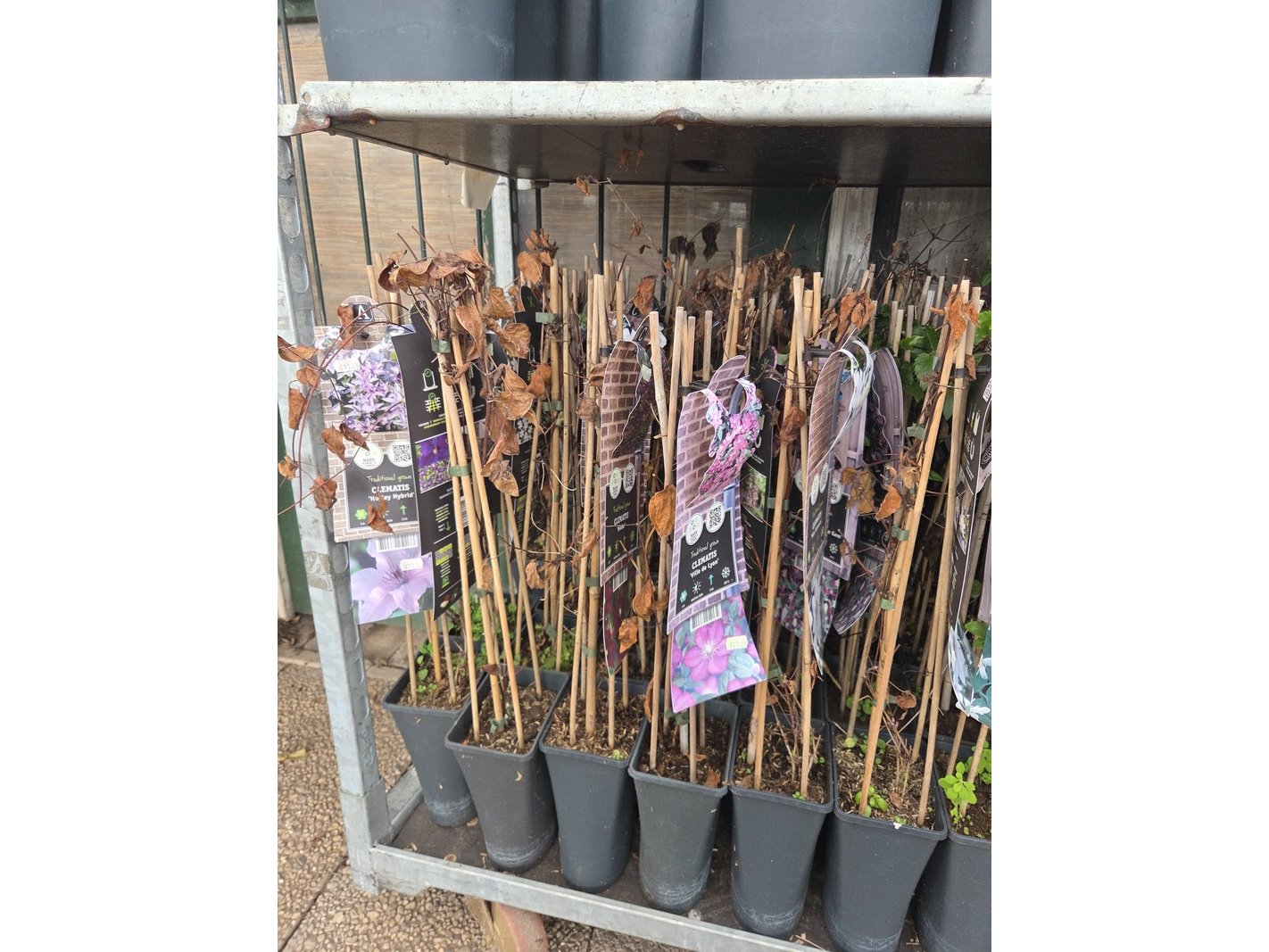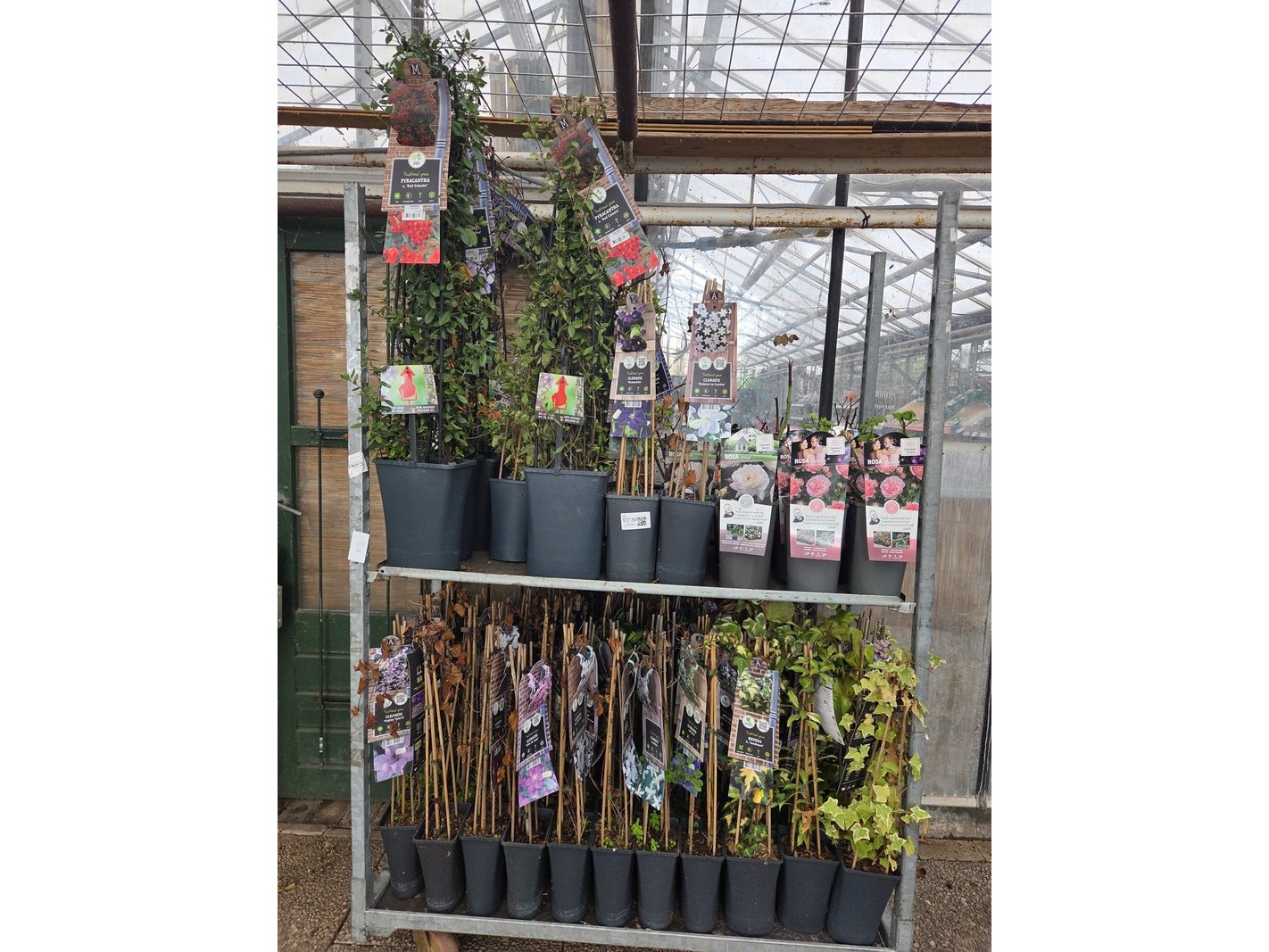 Product: Partij bloemen Specificaties: Bestaande uit o.a. clematis, rozen, hedra etc. Exclusief stelling.