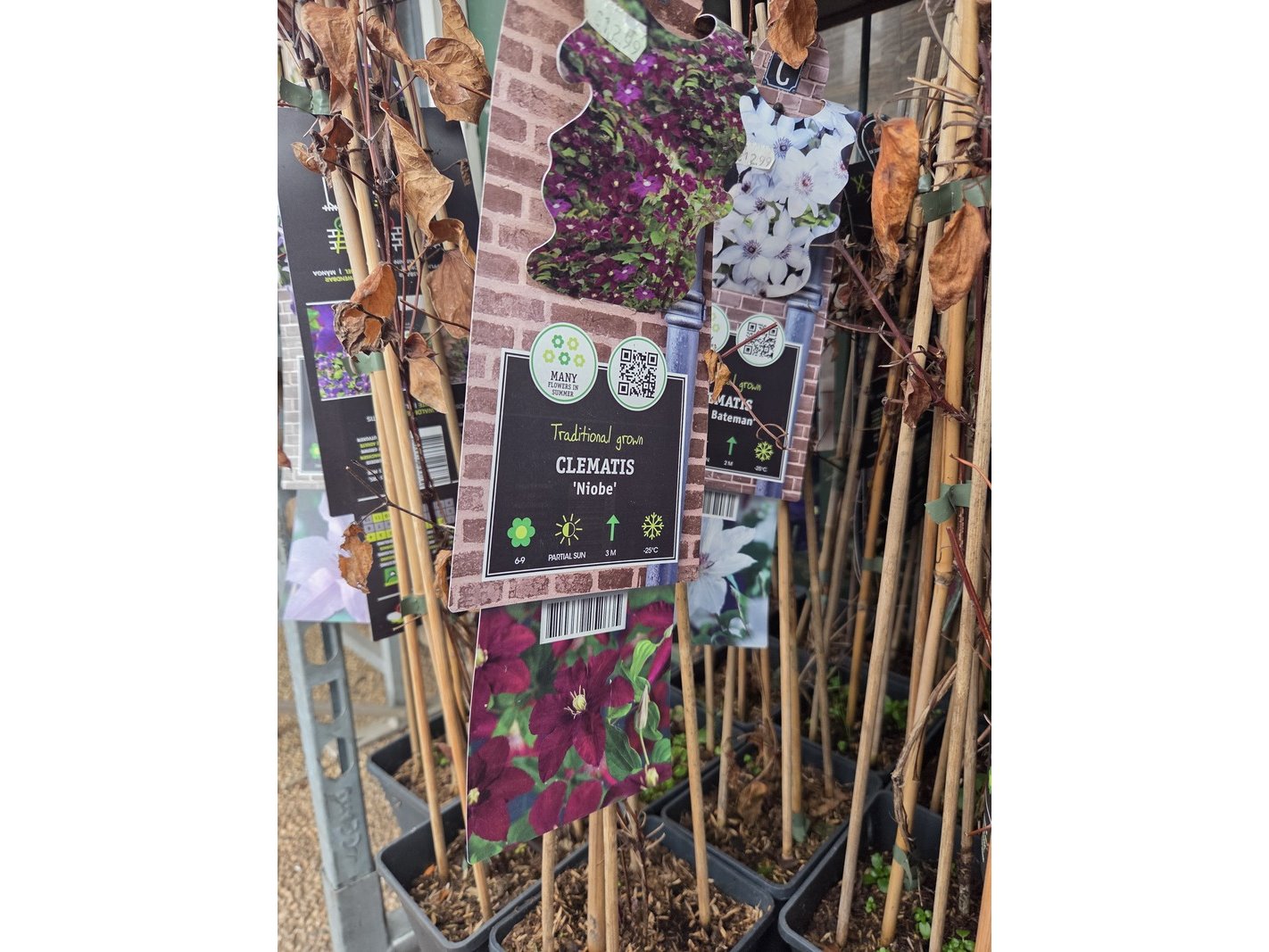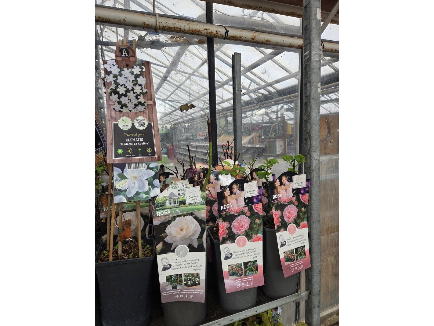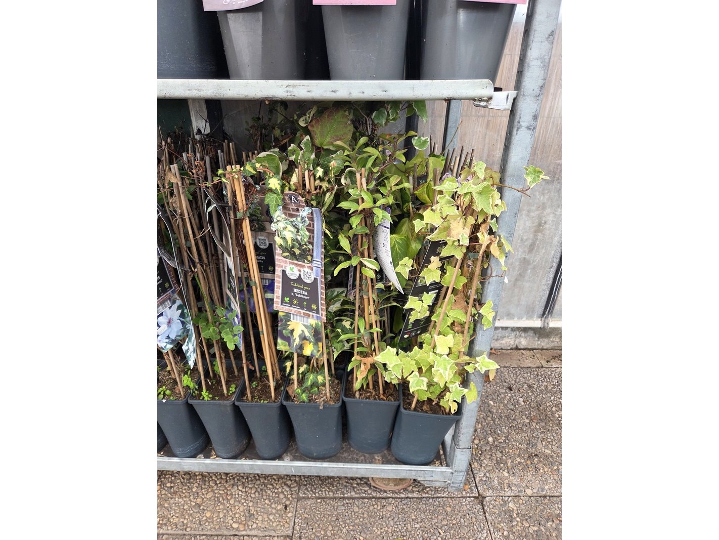 Product: Partij bloemen Specificaties: Bestaande uit o.a. clematis, rozen, hedra etc. Exclusief stelling.
