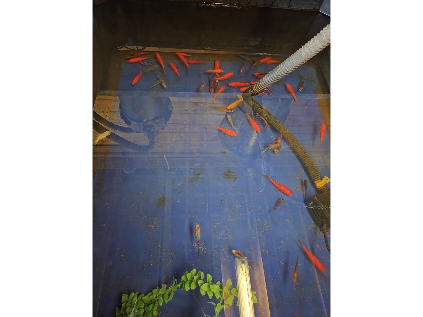 Product: Partij vissen Specificaties: Bestaande uit o.a. graskarpers, goudvissen, koi, goudwinde, shubunkin etc.