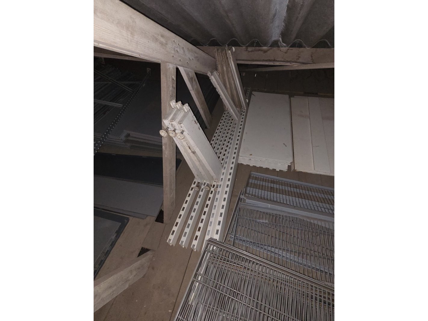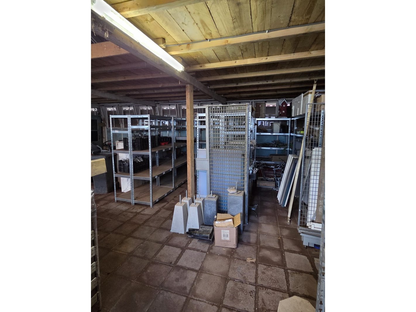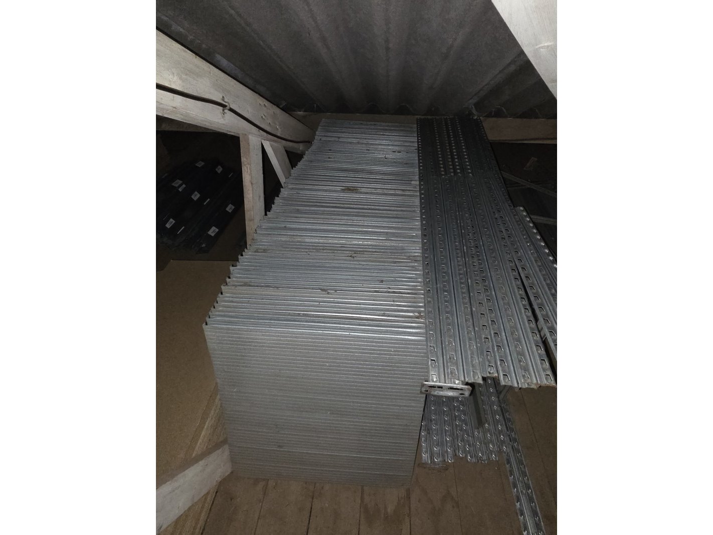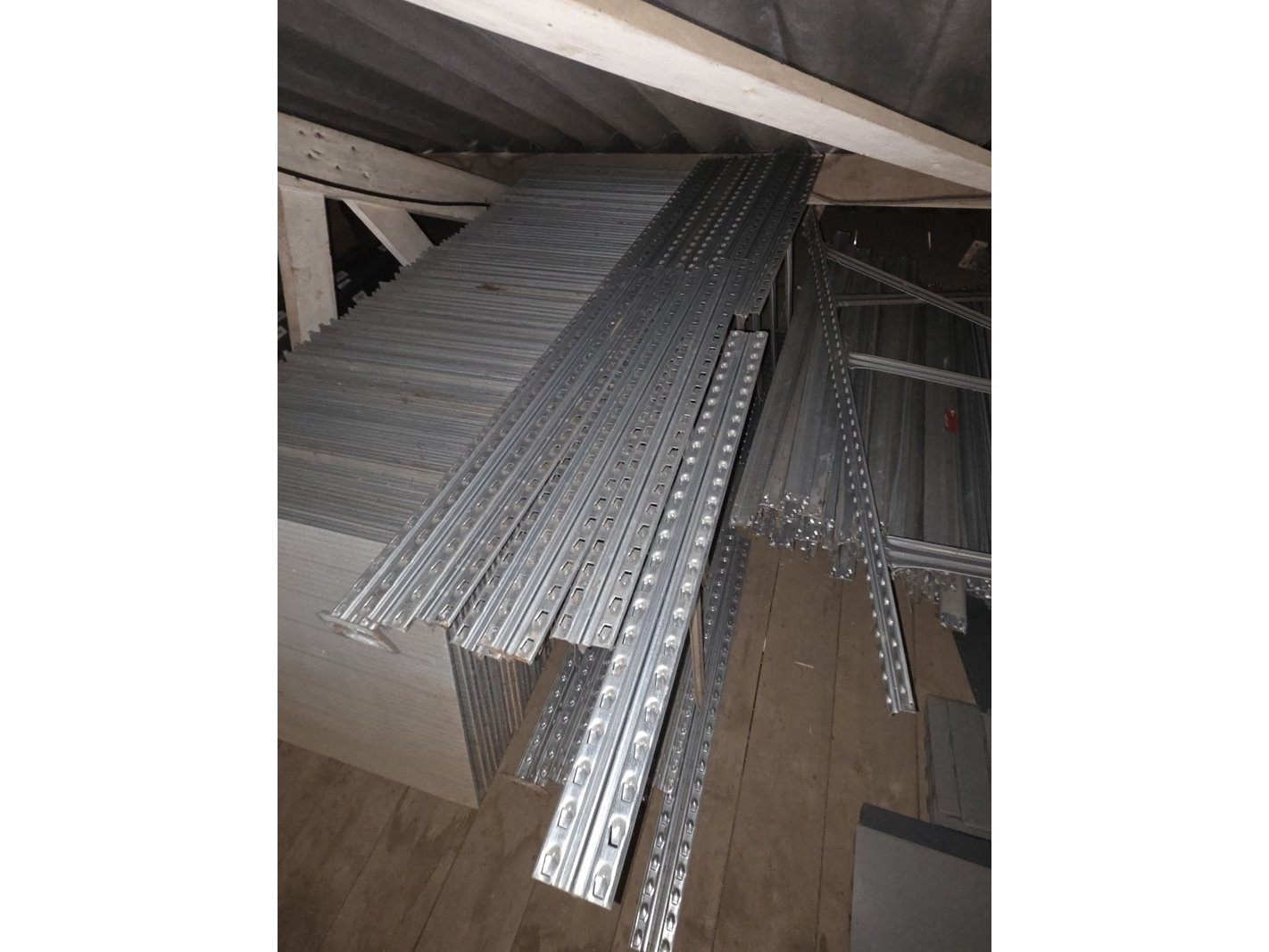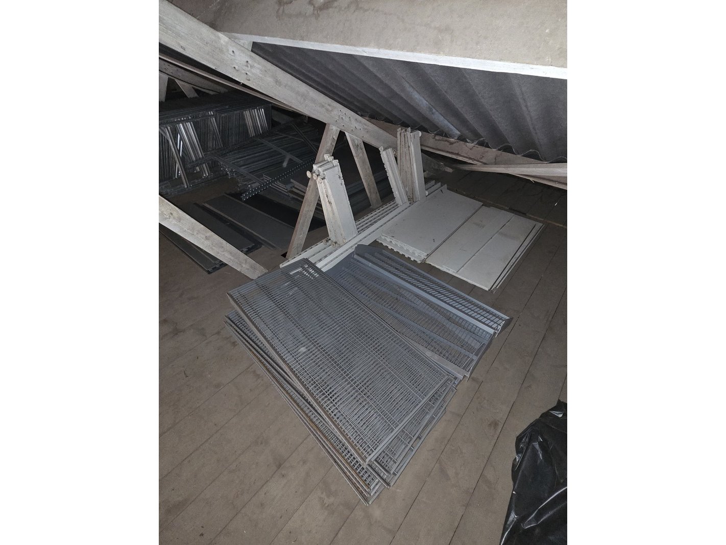 Product: Partij stellingen Specificaties: Bestaande uit o.a. 14x staander hoogte 82 cm, 4x staander hoogte 144 cm, ca. 90x plaat en ca. 30 meter stelling met houten platen. Exclusief inhoud.