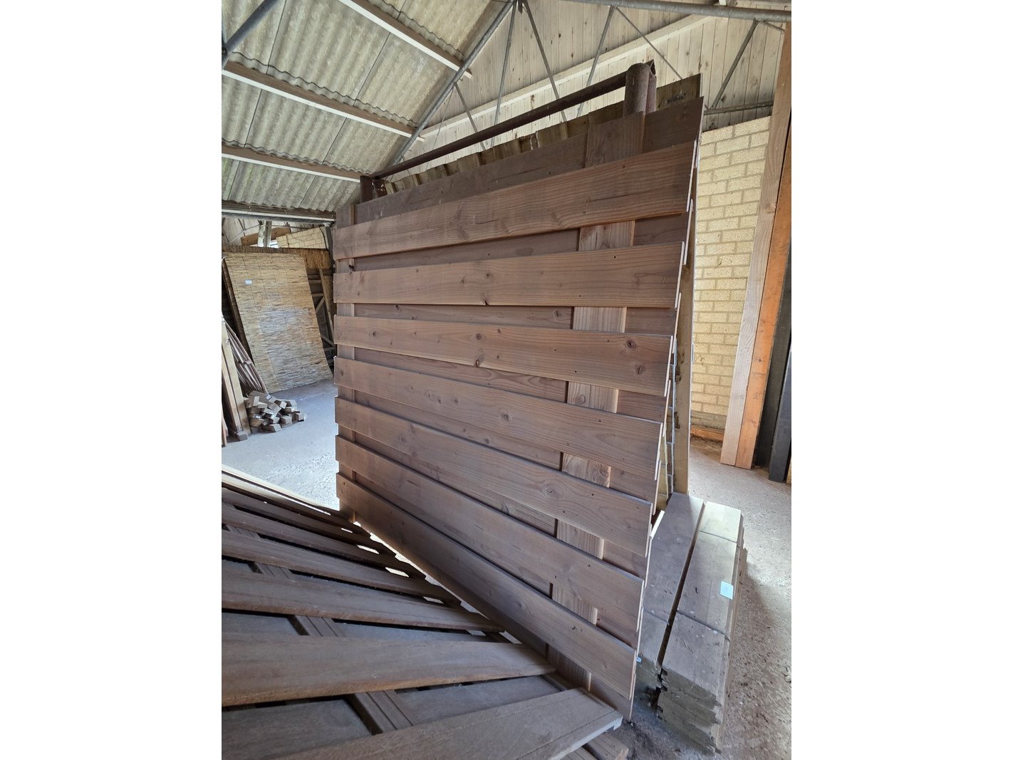 5x schuttingpaneel, o.a. hillhout