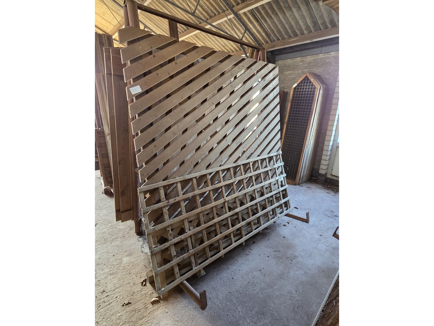 Product: Schuttingpaneel met 3x klimoprek Afmeting: o.a. lxb ca. 180x185 cm. Specificaties: Diverse soorten en maten. Inclusief palen. Exclusief stelling.