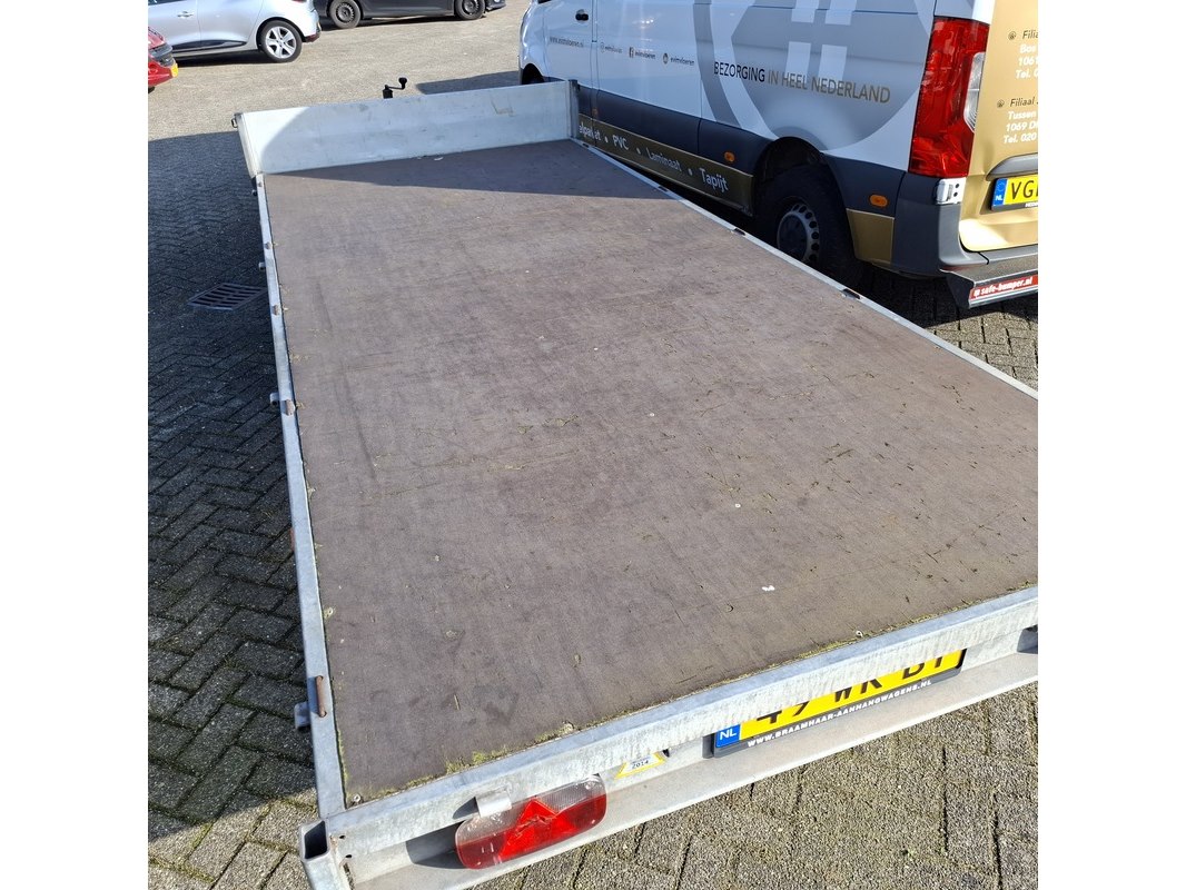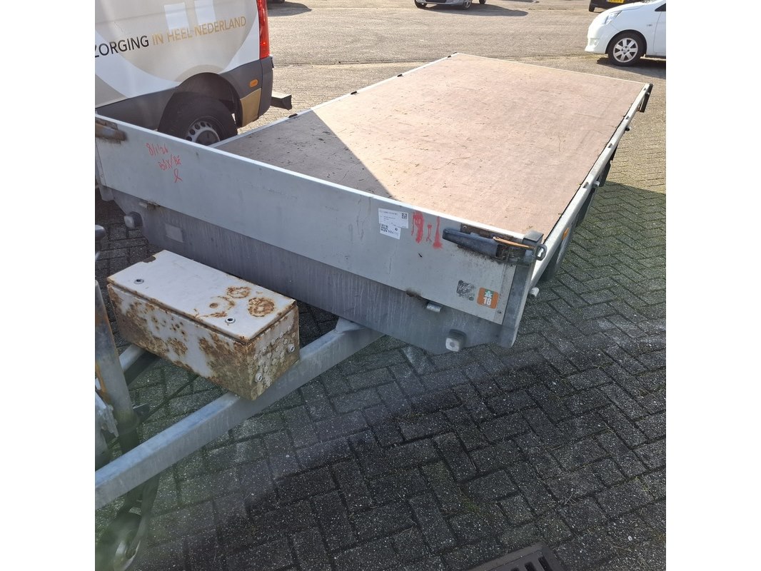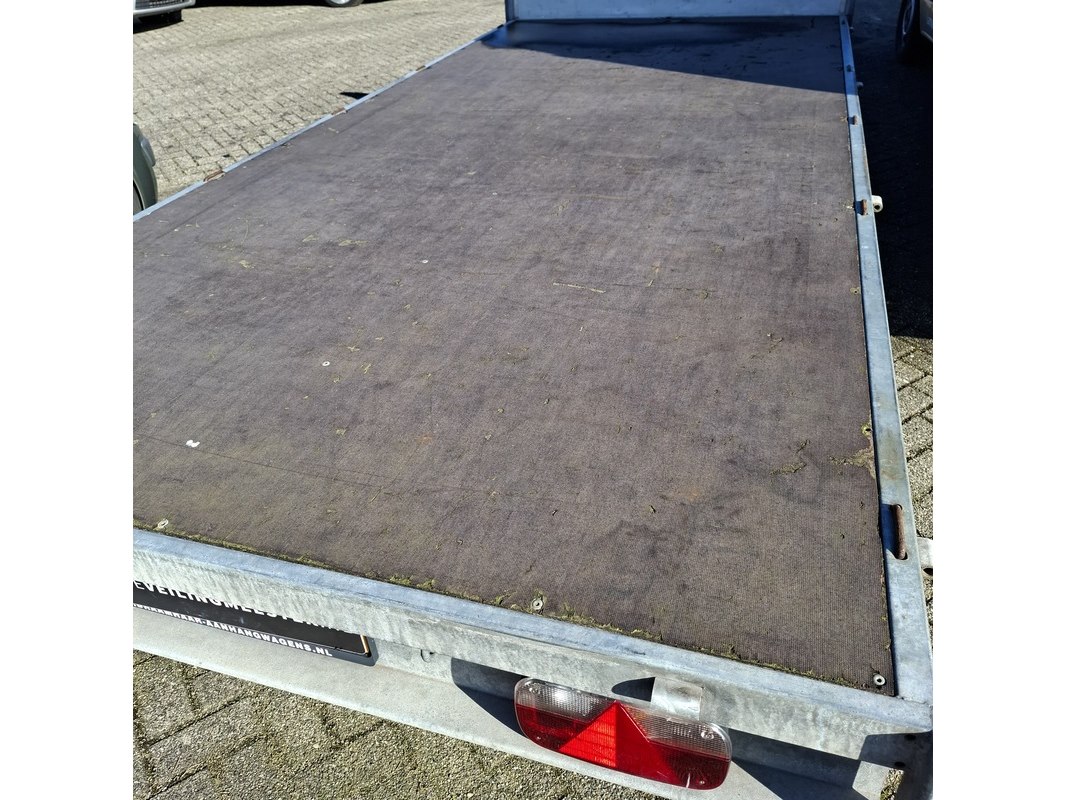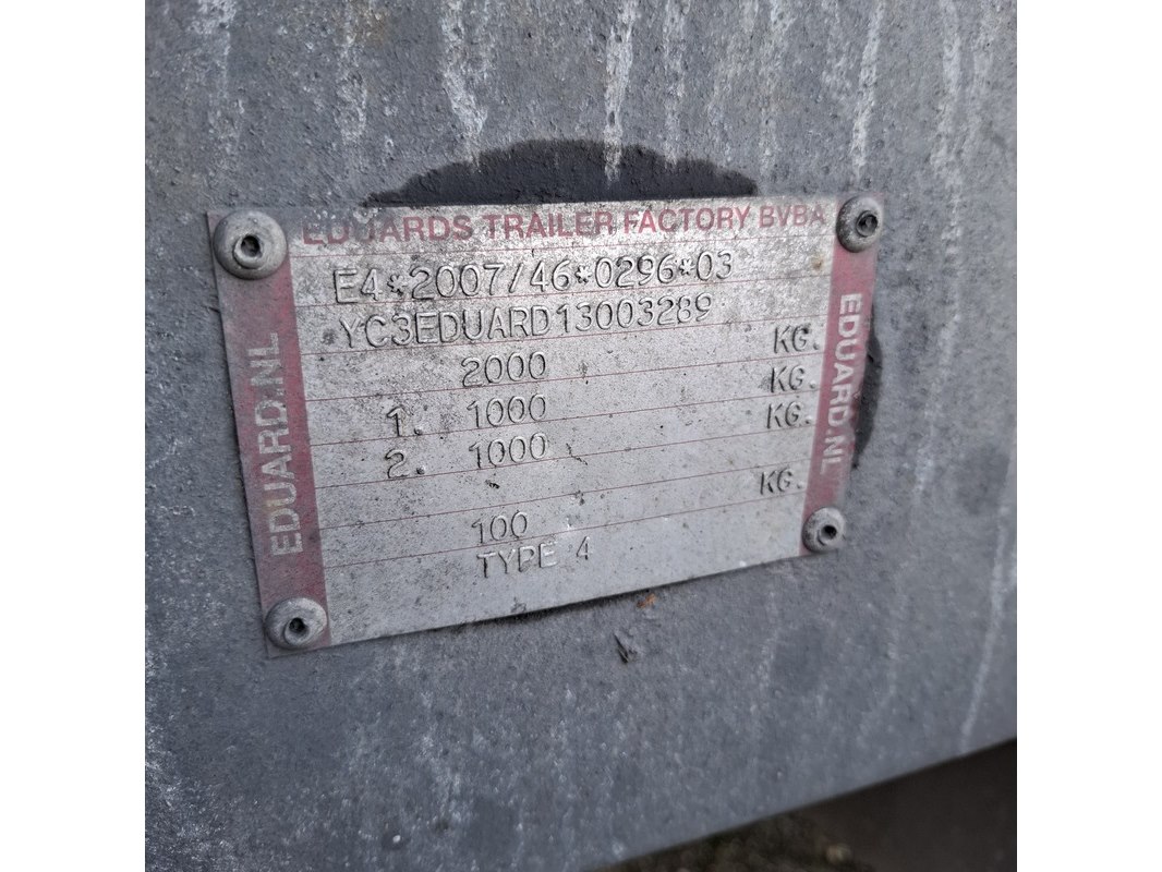 Merk: Eduard Product: Geremde aanhanger Afmeting: LxB ca. 405x180 cm. (laadvlak) BouwJaar: 2014 Conditie: gebruikt Specificaties: VIN nummer: YC3EDUARD13003289 Eerste toelating nationaal: 23-04-2014 APK vervaldatum: nvt Afgelezen tellerstand: nvt Afmetingen laadvlak circa 405 x 180 cm GVW 2000 kg Zij- en achterbord(en) ontbreken