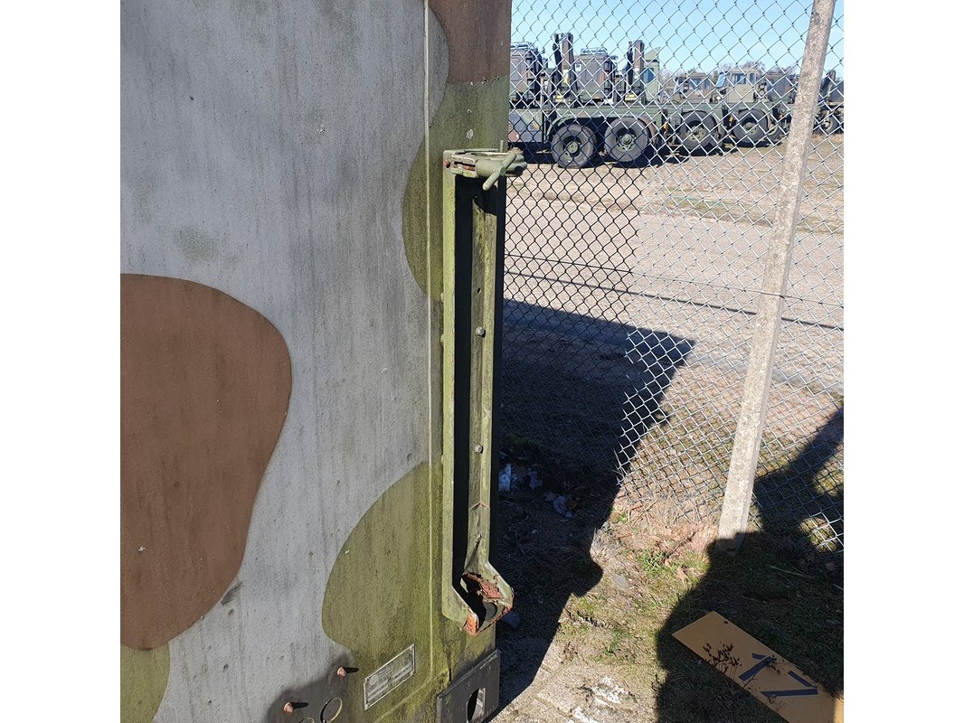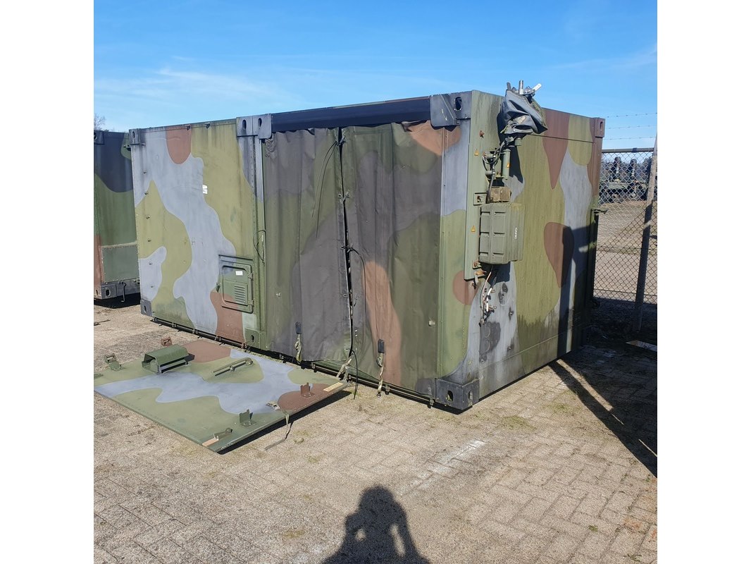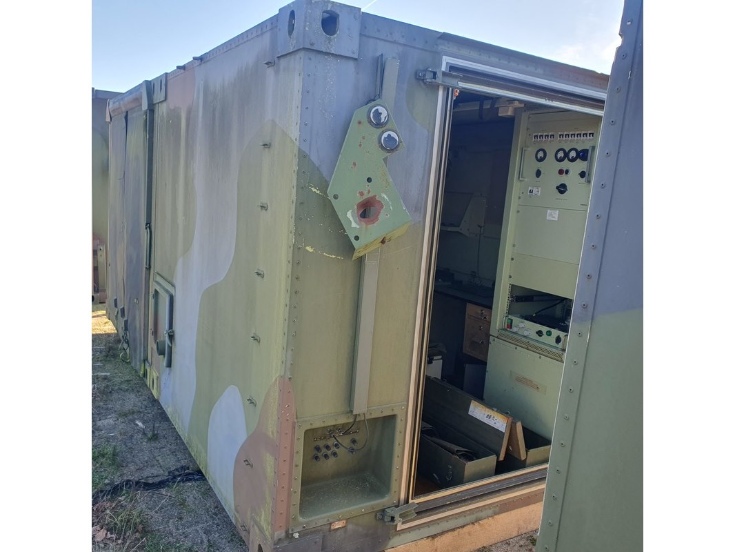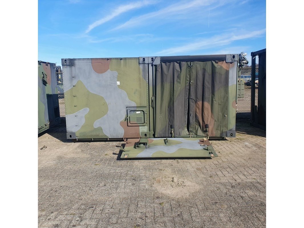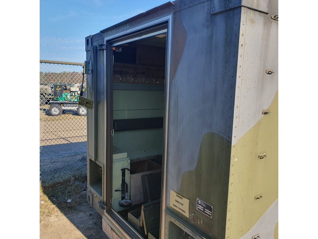 Merk: Fokker Product: Shelter Afmeting: LxBxH ca. 424x218x202 cm. Conditie: gebruikt Specificaties: Gewicht ca. 1753 Kg. Let op, grotendeels casco. Technische staat en compleetheid onbekend. scharnieren van deur defect, deur los meegeleverd