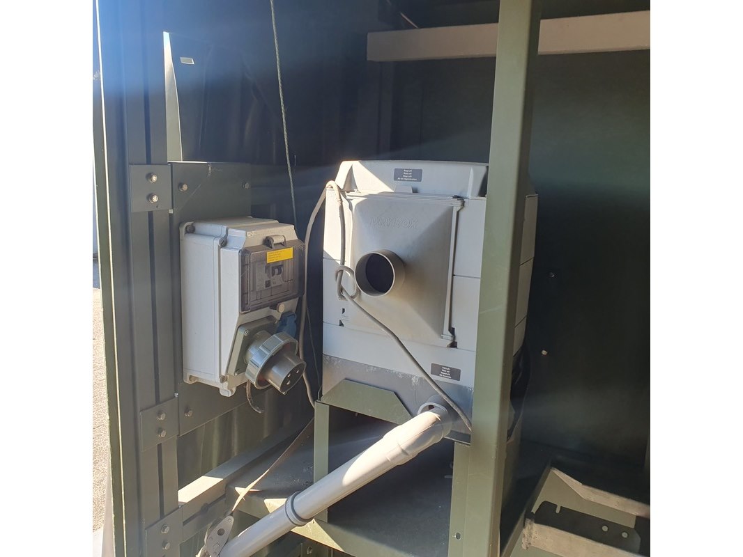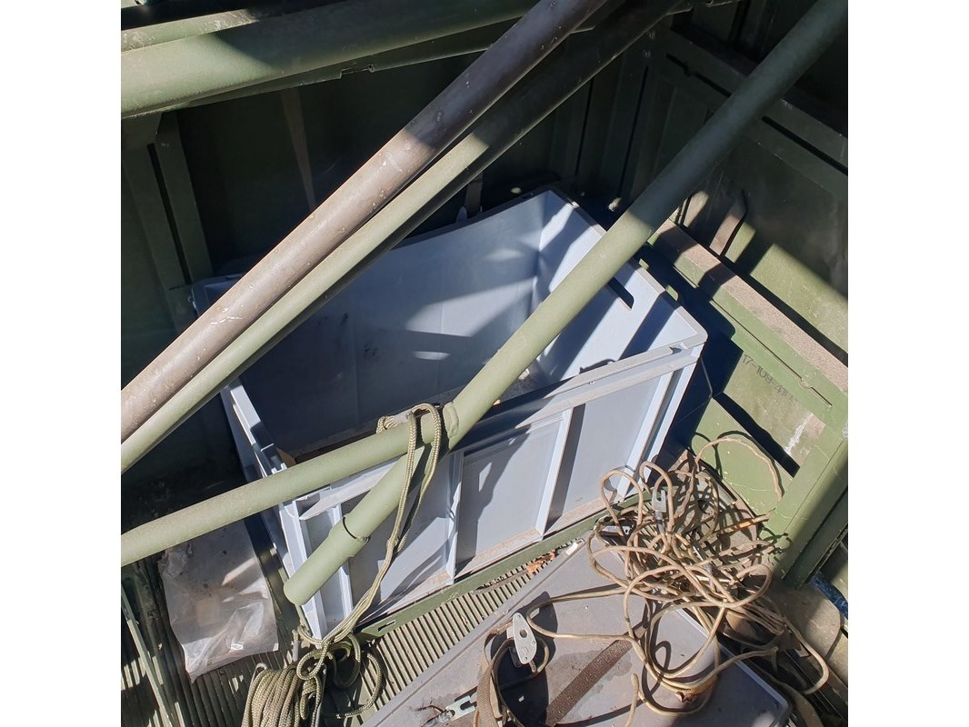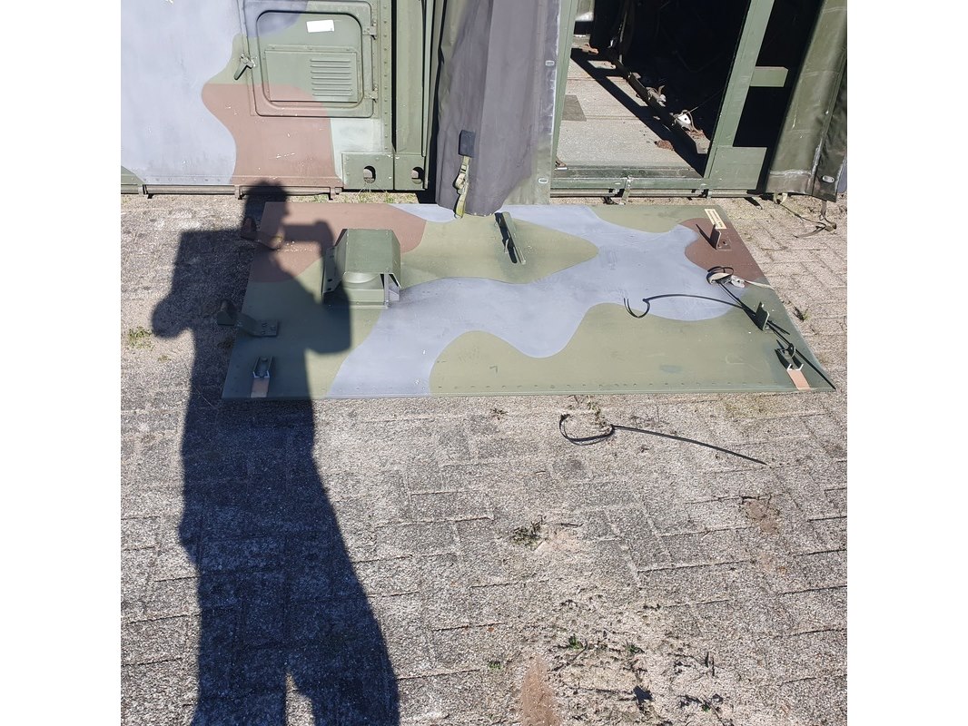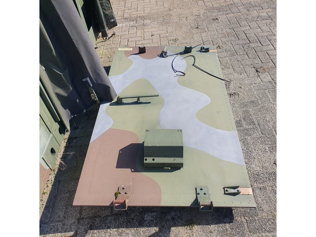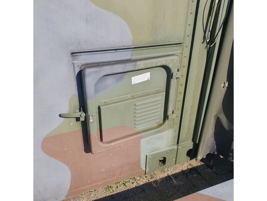 Merk: Fokker Product: Shelter Afmeting: LxBxH ca. 424x218x202 cm. Conditie: gebruikt Specificaties: Gewicht ca. 1753 Kg. Let op, grotendeels casco. Technische staat en compleetheid onbekend. scharnieren van deur defect, deur los meegeleverd