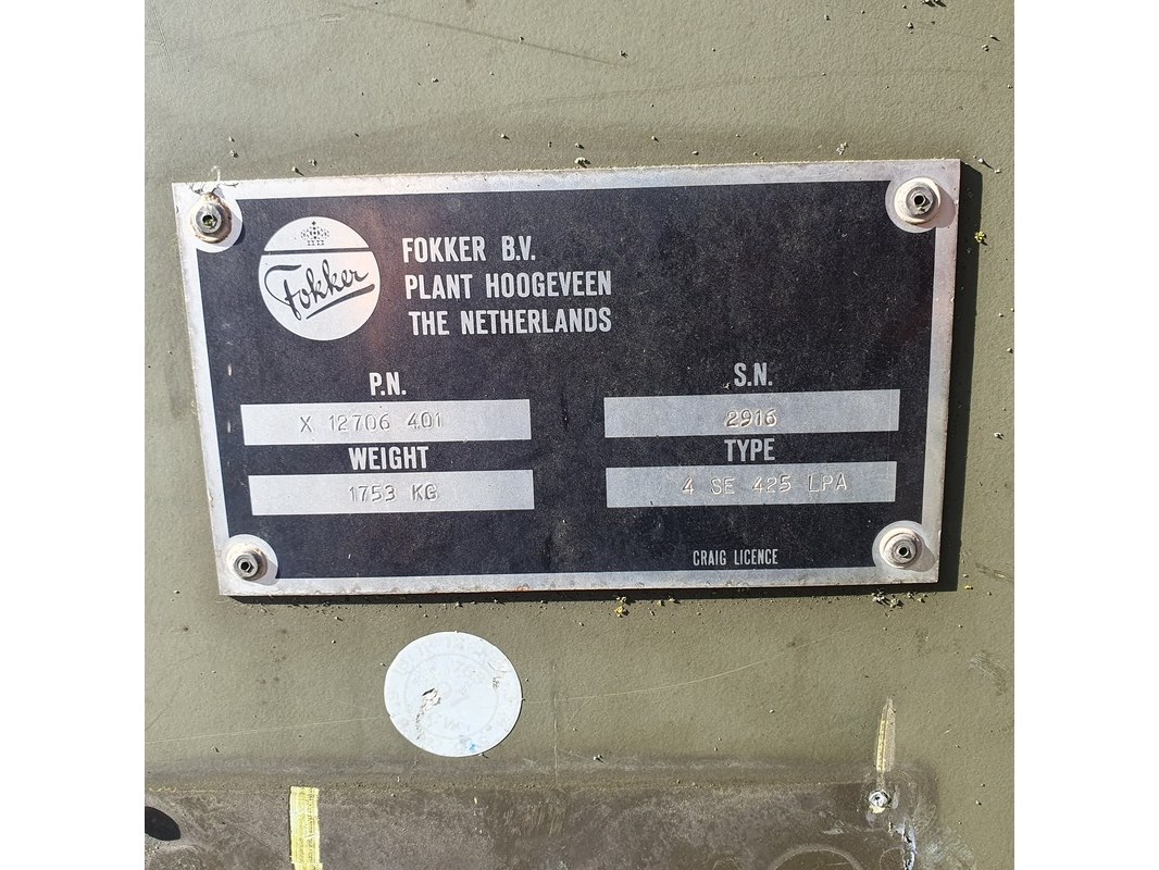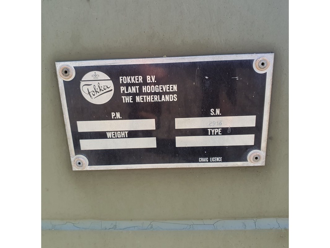Merk: Fokker Product: Shelter Afmeting: LxBxH ca. 424x218x202 cm. Conditie: gebruikt Specificaties: Gewicht ca. 1753 Kg. Let op, grotendeels casco. Technische staat en compleetheid onbekend.