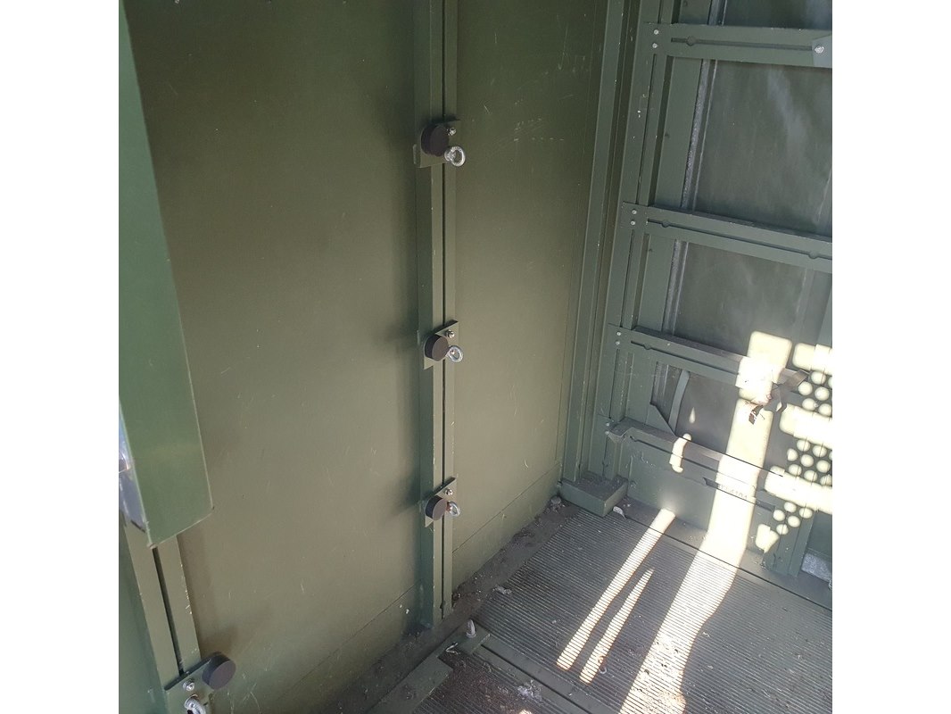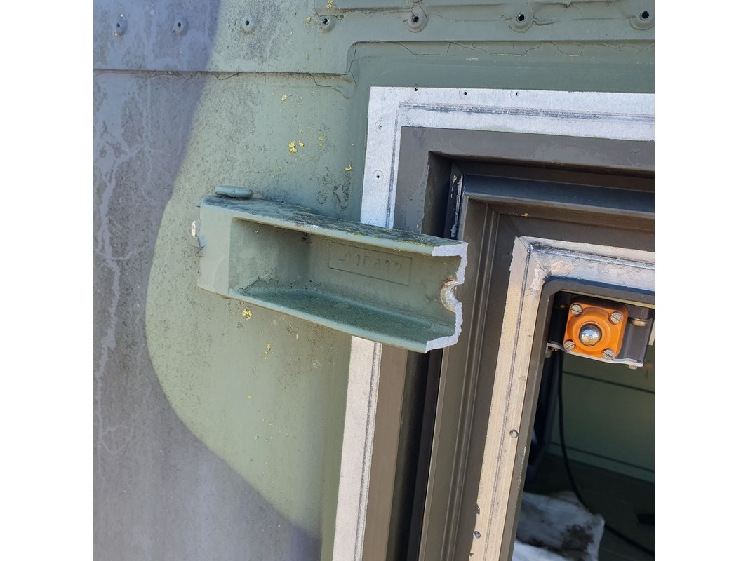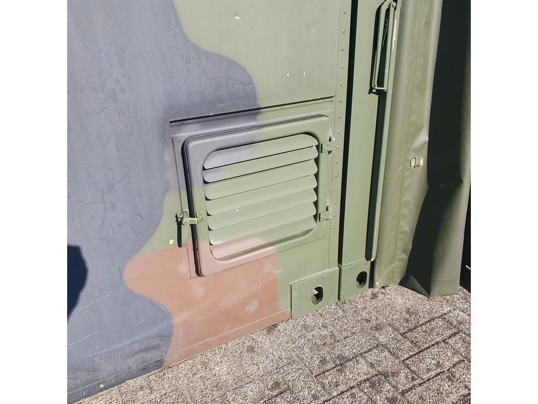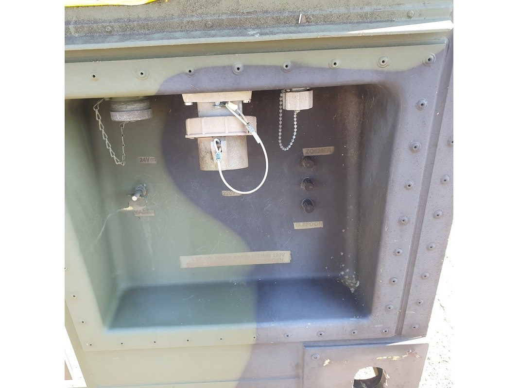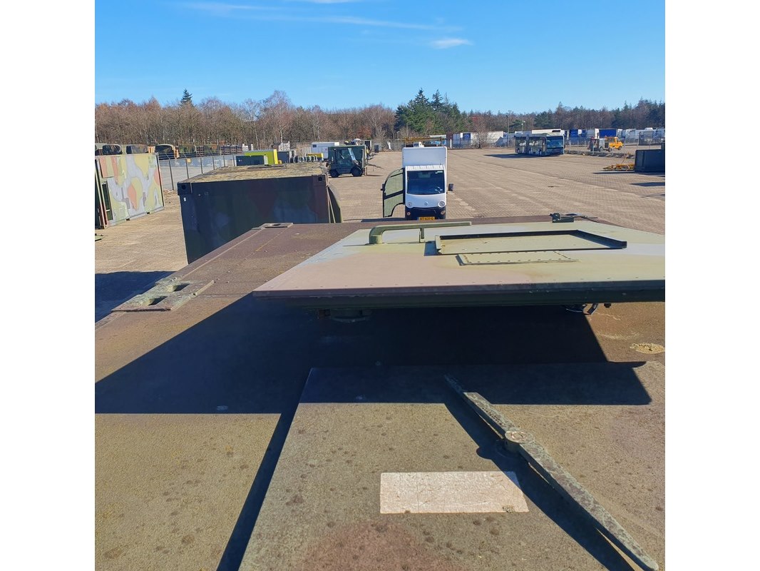 Merk: Fokker Product: Shelter Afmeting: LxBxH ca. 424x218x202 cm. Conditie: gebruikt Specificaties: Gewicht ca. 1753 Kg. Let op, grotendeels casco. Technische staat en compleetheid onbekend. scharnieren van deur defect, deur los meegeleverd