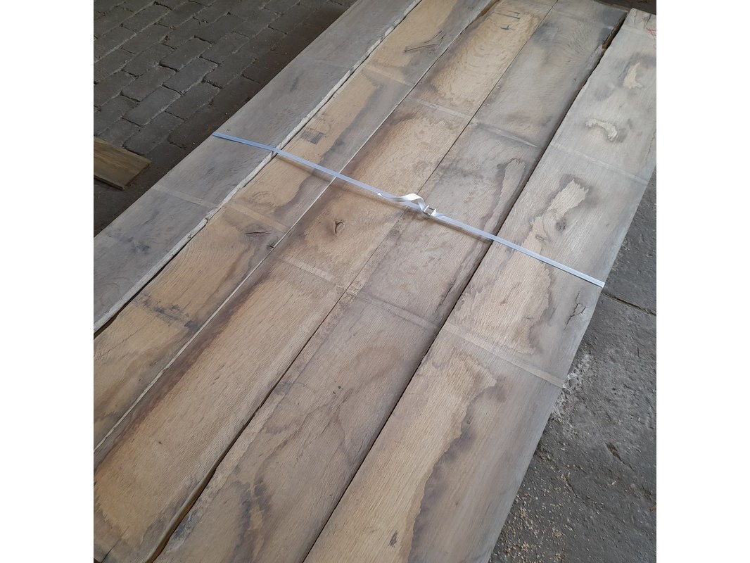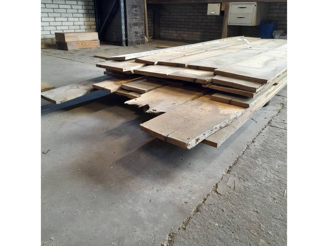 Product: Eiken planken divers Materiaal: Eikenhout Afmeting: Dikte ca. 2 cm, breedte 15-30 cm, lengte 230-330 cm Conditie: nieuw