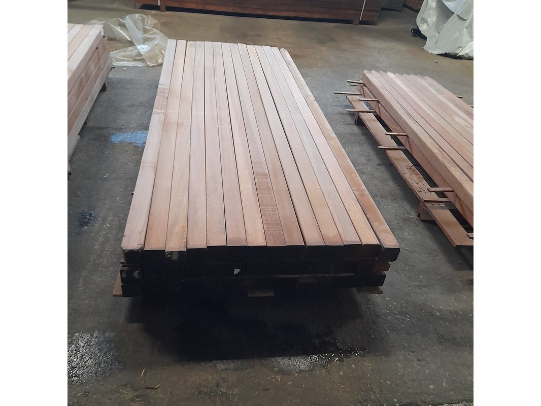 Product: Hardhouten paal Materiaal: Angelim Vermelho Afmeting: 6,8 x 6,8 x 250 cm Conditie: nieuw
