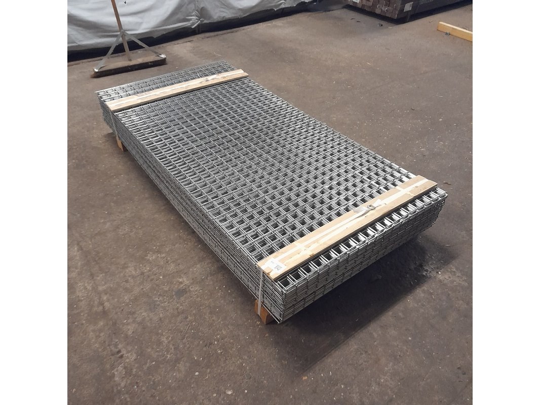 Product: Gegalvaniseerde gaasmat Materiaal: Metaal, verzinkt Afmeting: Afmeting 90x180 cm, maaswijdte 5x5 cm, draaddikte 4 mm Conditie: nieuw