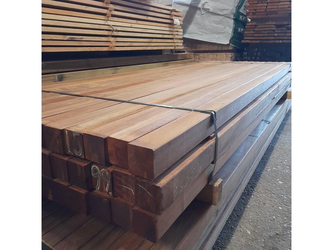 Product: Hardhouten paal Materiaal: Angelim Vermelho Afmeting: 6,8 x 6,8 x 275 cm Conditie: nieuw