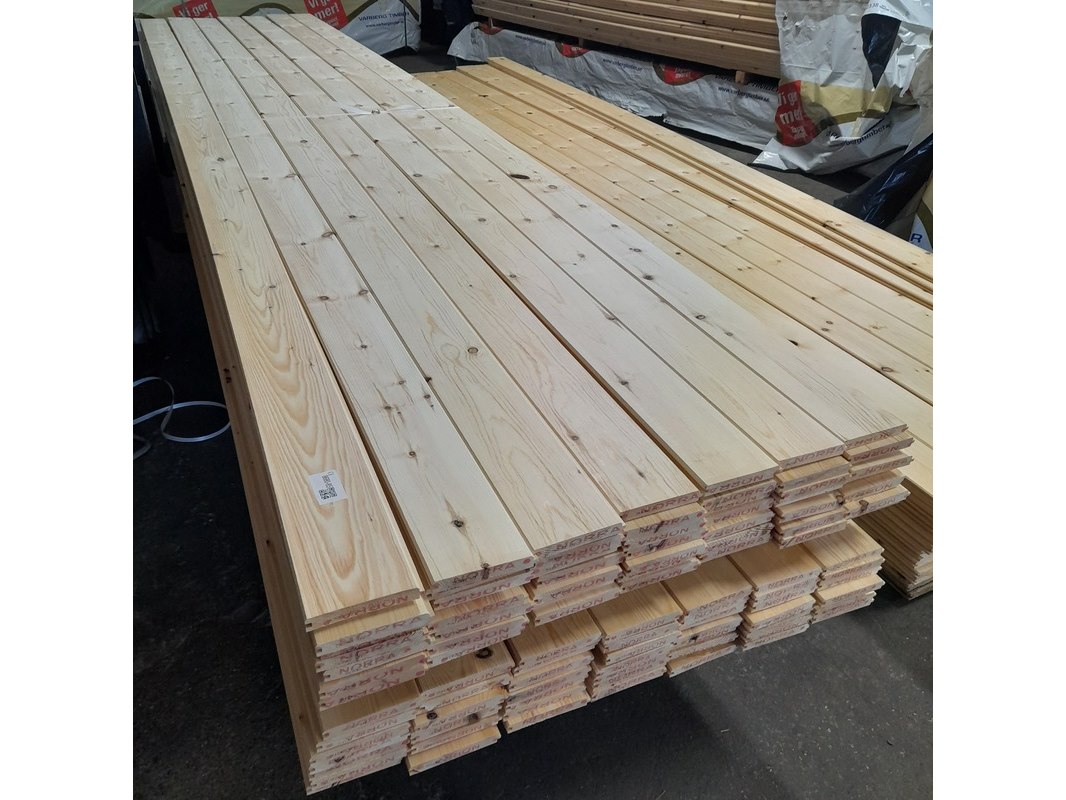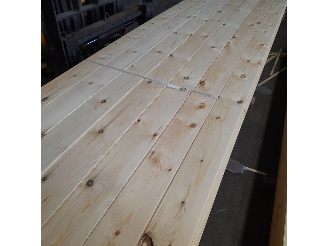 Product: Grenen vloerdeel met mes en groef Materiaal: Grenenhout Afmeting: 2,1 x 14,7 x 510 cm Conditie: nieuw Specificaties: Werkende breedte ca. 14 cm